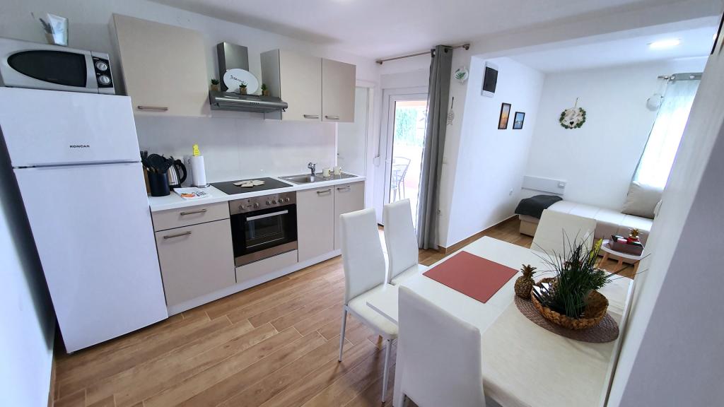Nově zařízené, moderní apartmány na ostrově Vir jsou vybaveny vším, co potřebujete pro příjemnou a relaxační dovolenou. Apartmány se nacházejí v prvním patře rodinného domu a každý z nich má vlastní velkou terasu, plně vybavenou kuchyň, koupelnu a ložnici a přilehlé parkovací místo, které je pro bezpečnost vašeho auta pod 24hodinovým kamerovým dohledem. Apartmány se nacházejí v klidné části ostrova bez nočního hluku a jsou vhodné pro hraní s dětmi, protože mnoho pláží má písčité dno a jsou ve většině částí velmi mělké, což z nich činí ideální volbu pro rodiče s dětmi. V blízkosti se nacházejí různé pláže, promenády a také veškeré další vybavení, jako jsou obchody, pekárny, kavárny, restaurace, lékárny, kliniky, kostely, pošty a autobusové nádraží. Všechna zařízení jsou v docházkové vzdálenosti a během pobytu není nutné používat auto. Všechny apartmány mají Wi-Fi, klimatizaci a pračku, které jsou zahrnuty v ceně. Pro všechny další informace a dotazy nás neváhejte kontaktovat.