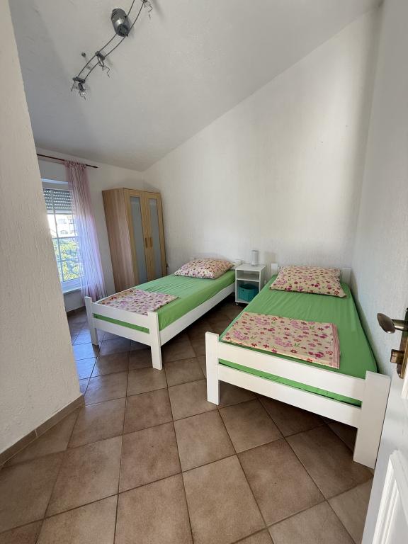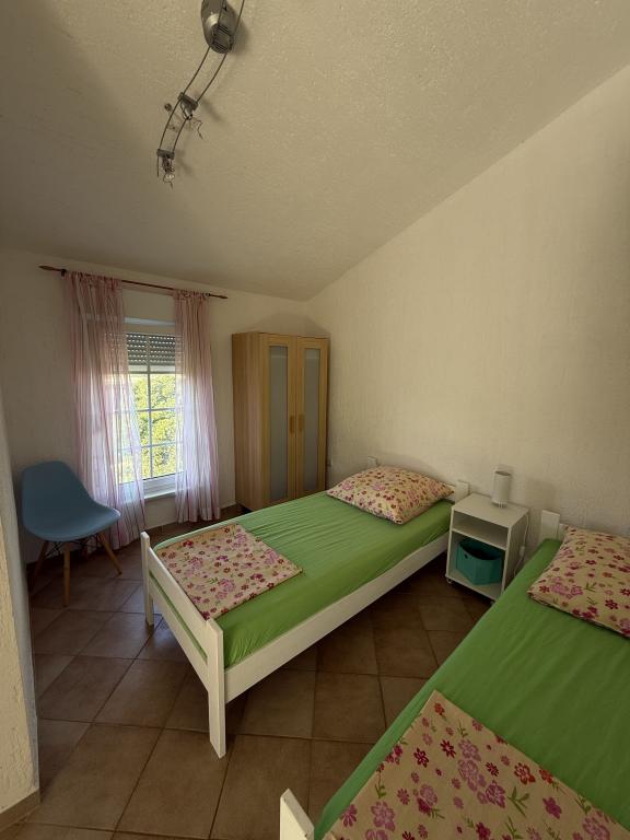 Na ostrově Vir, pouhých 150 metrů od moře, se nacházejí dva apartmány s kapacitou až 5 osob. Apartmány jsou moderně vybavené, klimatizované a přizpůsobené pro pohodlný pobyt. Každý apartmán má vlastní terasu s posezením a v oploceném dvoře mají hosté přístup k soukromému parkovišti a grilu. Blízkost moře a pláže spolu s praktickým vybavením činí z těchto apartmánů vhodnou volbu pro rodiny a malé skupiny přátel, které hledají ubytování v bezprostřední blízkosti všech hlavních zařízení. Apartmány jsou vhodné pro ubytování až 5 osob. Skládají se ze dvou ložnic, apartmány mají koupelnu se sprchovým koutem a pračkou a plně vybavenou kuchyň propojenou s obývacím pokojem. Pro relaxaci a venkovní pobyt je k dispozici také terasa s posezením. Apartmány jsou klimatizované a moderně zařízené, ideální pro rodinnou dovolenou nebo pobyt v menší skupině přátel.