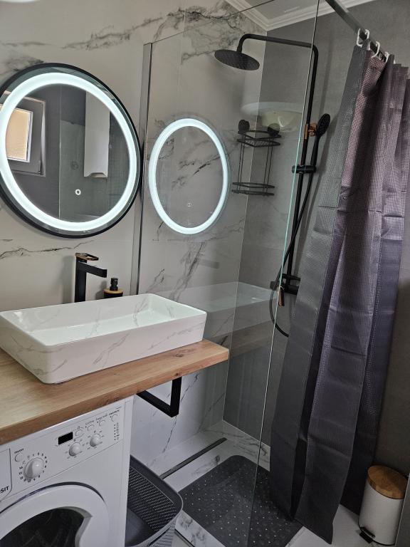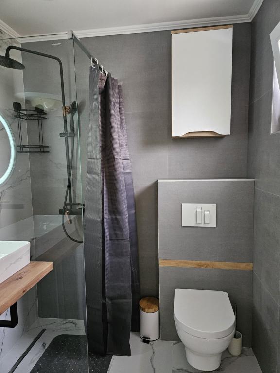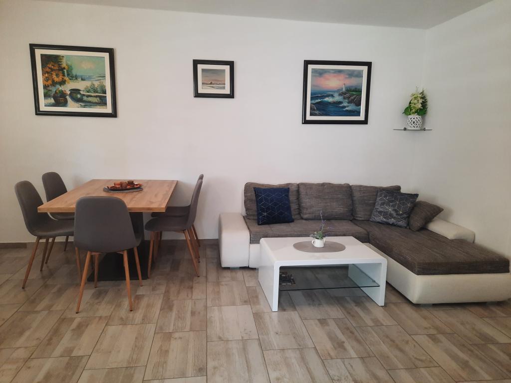 Apartmány se nacházejí v klidné části ostrova Vir, nově postavené, kompletně a moderně zařízené. Nacházejí se 100 m od pláže. Objekt se nachází 200m od obchodů, restaurací, kasin, pekáren, směnáren, bankomatů a kaváren. Apartmány se skládají ze dvou ložnic, obývacího pokoje, jídelny, kuchyně, koupelny, chodby a krytých teras.Každý apartmán má na terase gril. Apartmány jsou vybaveny klimatizací, WIFI, satelitní parabolou. Každý apartmán má vlastní parkovací místo.