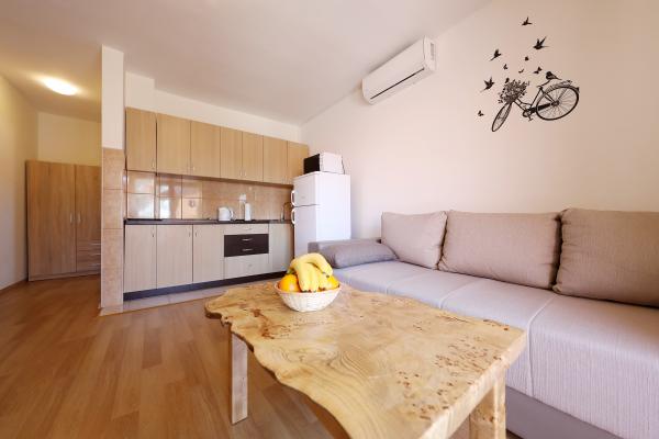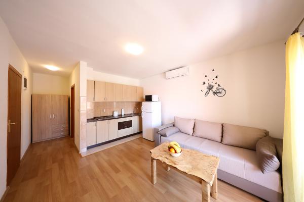 Byli jsme v Goranu v srpnu (dva dospělí + děti (9 a 2 roky)). Mega teplé (ale mělo to tak být :)) Byt je 100% kompatibilní s popisem. Čisté, dobře udržované, plně vybavené (nádobí, příbory, ložní prádlo, klimatizace, lednice, mikrovlnná trouba atd.). Blízko oblázkové pláže - dlouhá, regulovaná pláž s velmi jemným klesáním (ideální pro děti). V hospodě na krátké vzdálenosti, pekařství, obchod. Kousek od centra - ale nám to nevadilo. Majitelé jsou skvělí, velmi zdvořilí a ochotní lidé - ať už jsou všichni !!!