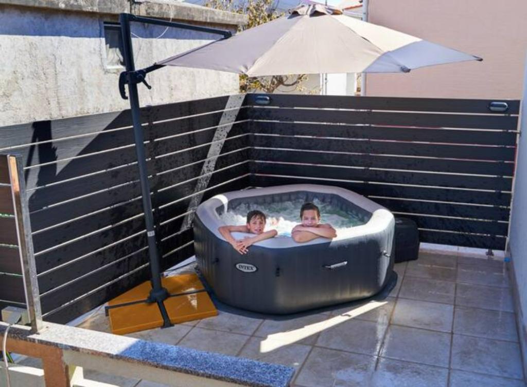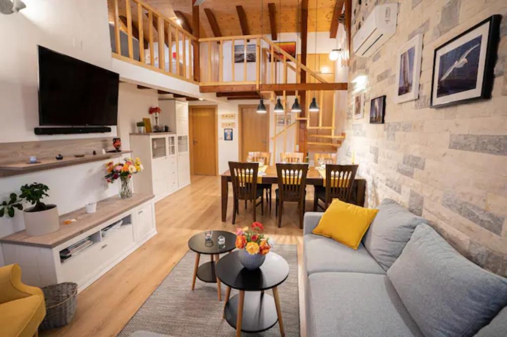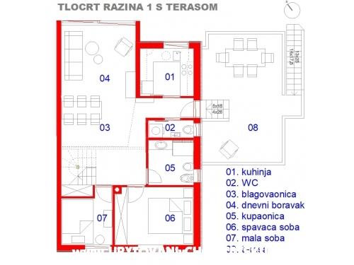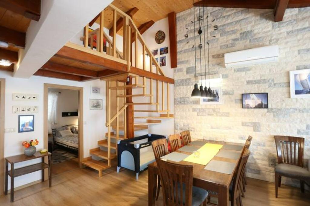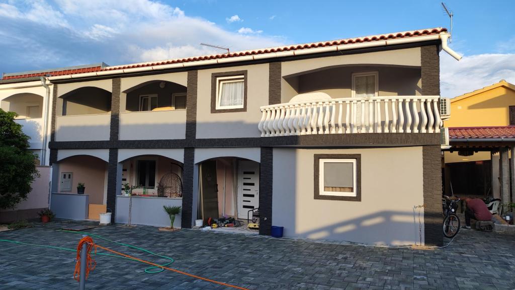 Apartmány Larus se nachází na severní části ostrova Vir a od písečné pláže je zařízení vzdáleno 120 m. Supermarket je vzdálen 2 minuty, lékárna a pošta jsou 6 minut od apartmánu a centrum a okolí promenáda je vzdálena 8 minut. Výborná restaurace u moře 120 m. Byt je v prvním patře s výhledem na moře. Kromě dvou ložnic a galerie s velkou postelí 200x200 a další TV, kuchyně, velké jídelny a obývacího pokoje, koupelny a samostatného WC je k dispozici zahradní gril a sprcha na terase a bazén s jacuzzi! Byt byl postaven v roce 2019 a je luxusně vybaven všemi spotřebiči a dvěma velkými televizory.