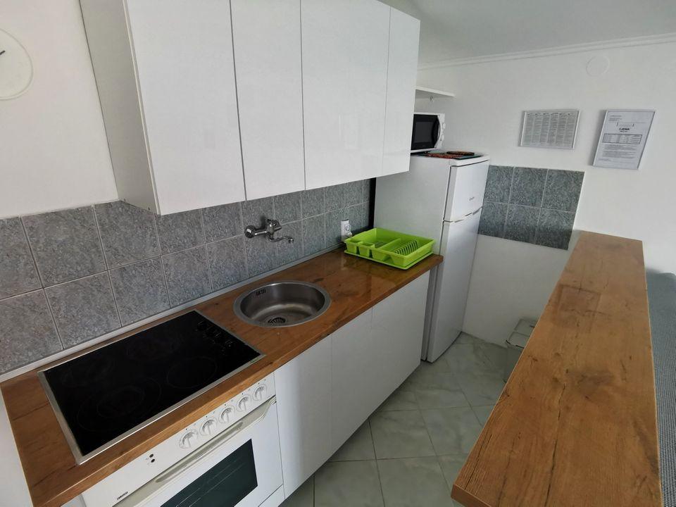 Byt - 1 - sestává ze dvou neprůchozích pokojů, samostatné kuchyně a koupelny. V jednom pokoji je manželská postel, ve druhém je rohová sedací souprava. K bytu náleží krytá terasa 50 m2 obklopená borovým lesem. Velkou výhodou bytu je jeho umístění na konci slepé, klidné a bez provozu, nabízí tak zaručený klid a soukromí. V budově je k dispozici parkovací místo a gril pro opékání.