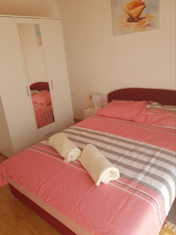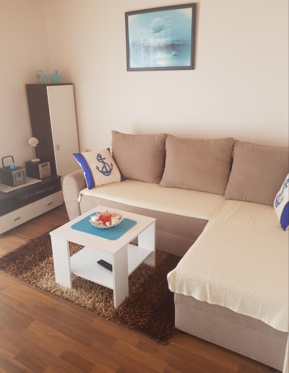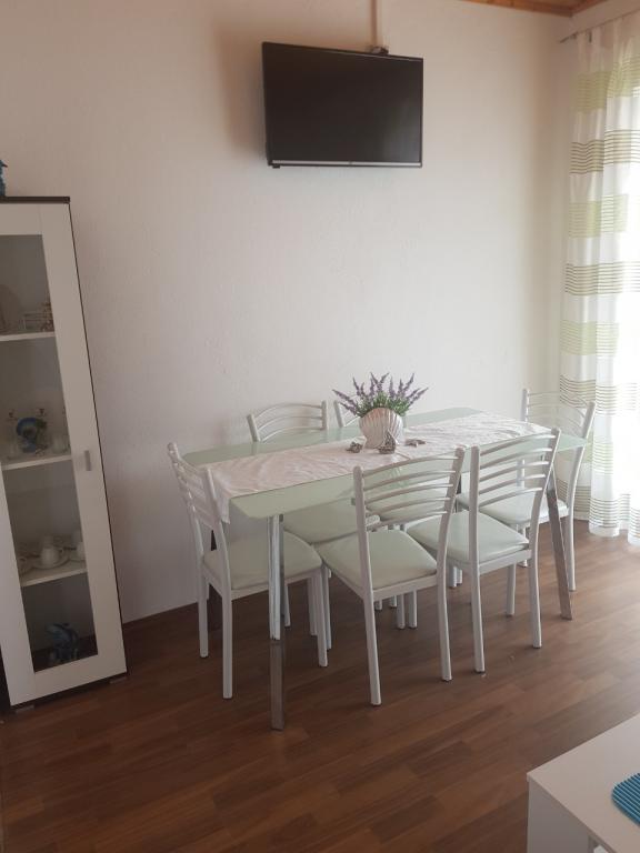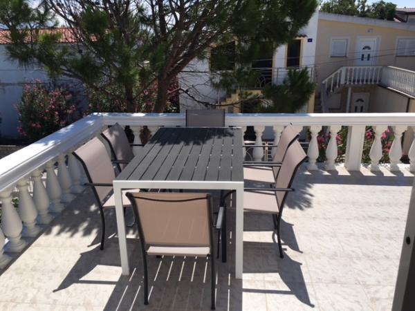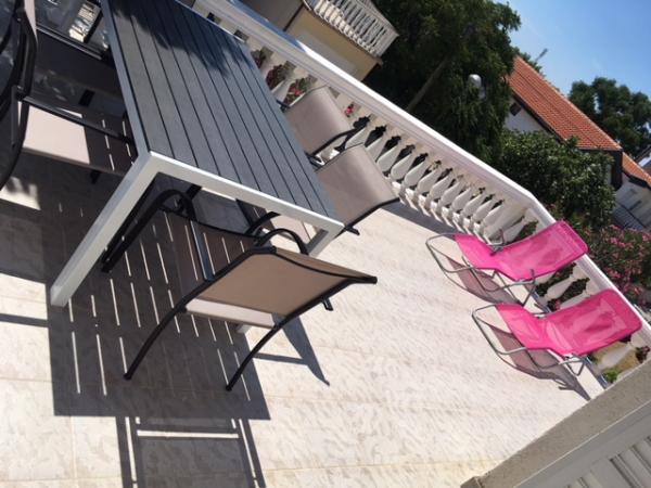 Velký třípokojový byt 56 m2 30 m2 terasa přes dům. Je vhodný pro 1 větší nebo 2 menší rodiny. Nachází se 80 metrů od hlavy plážového zálivu. Ulice je klidná, všechna zařízení jsou nedaleko.