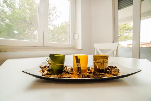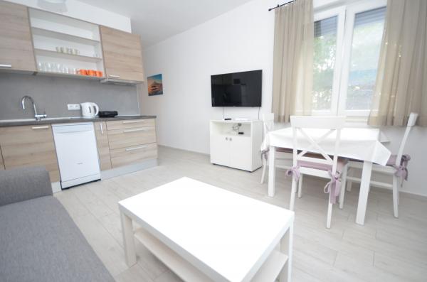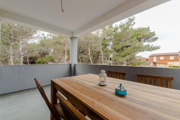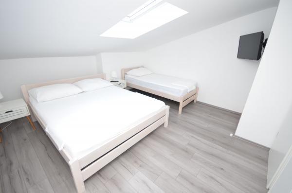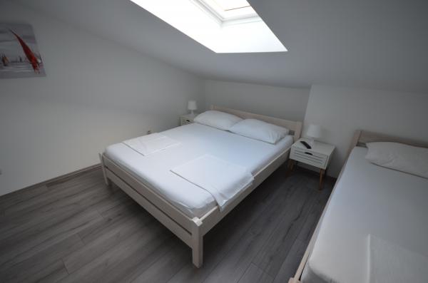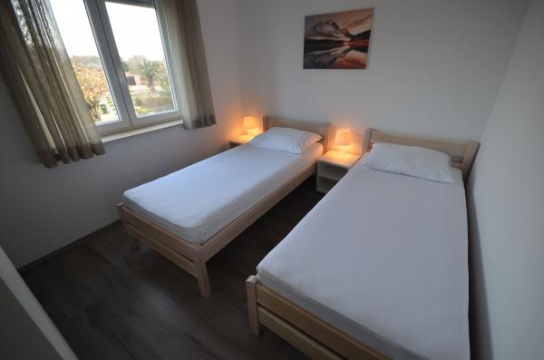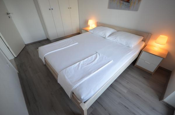 Apartmány Mondo jsou extrémně moderně zařízené se 4 dostupnými apartmány pro nejrůznější rodiny. Dům byl postaven v roce 2015. Nacházíme se v blízkosti centra, ale v klidné oblasti, kde není příliš osídlena borovým lesem. Do centra města trvá 5 minut chůze (300 m), dvě pláže jsou k dispozici na obou stranách ostrova, což trvá zhruba 6-8 minut chůze. Dům se nachází uprostřed ostrova, takže nepotřebujete auto, protože v blízkosti jsou 3 supermily. Apartmán A3 / 1 pokoj - obývací pokoj s kuchyňským koutem, předsíň, pokoj (160x200 cm), koupelna s WC, 1 terasa. Apartmán A5 / 2 pokoje / - obývací pokoj s kuchyňským koutem, předsíň, pokoj (160x200 cm), pokoj (2 x 90x200 cm), koupelna s WC, 2 x terasa. Apartmán A8 / 3 pokoje / obývací pokoj s kuchyní, předsíní, WC s umyvadlem WC s umyvadlem a sprchou, pokoj (160x200 cm), pokoj (1x lůžko 160x200cm, 1x lůžko 90x200 cm) 3 terasy