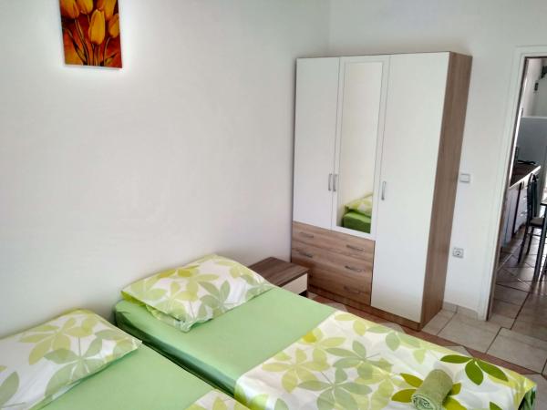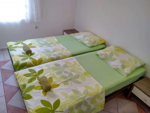 Apartmány vynikající, velmi elegantní a dobře vybavené. Majitelé jsou velmi milí, pohostinní a ochotní. K dispozici lehátka a slunečník. Na jedné straně bytu je terasa a na druhém balkoně (sami si vyberete nebo ranní kávu na slunci nebo ve stínu), s krásným výhledem na moře a hory. V okolí je vše: obchod, restaurace, pekárna a zmrzlina. Možnost grilování. Jsme velmi spokojeni s dovolenou. Doporučil bych!