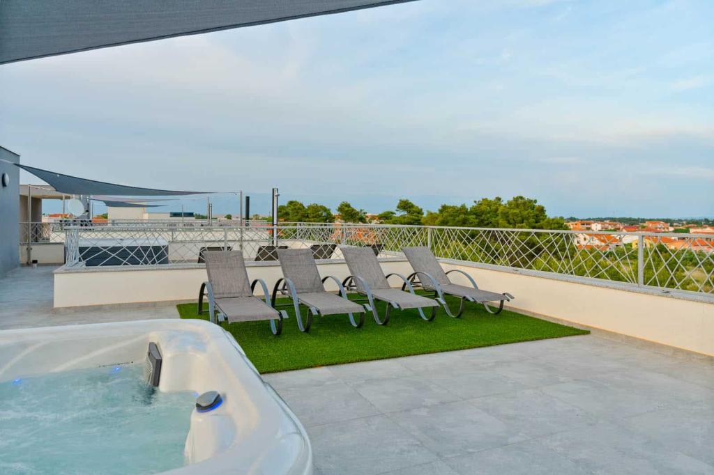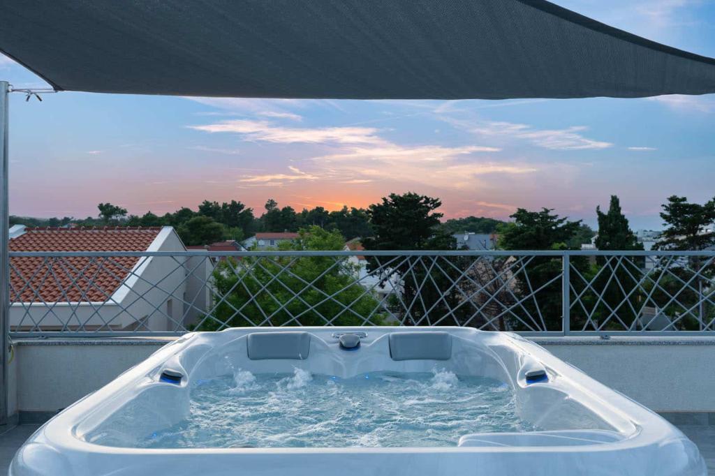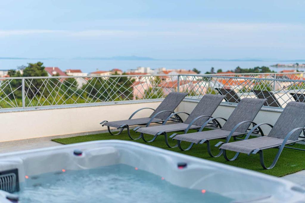 Vrcholem našich apartmánů Queen na ostrově Vir je rozhodně vířivka umístěná na prostorné soukromé terase. Tato vířivka vám nabízí kompletní relaxaci a hýčkání, protože si můžete dopřát masáž v teplé vodě s výhledem na krásný výhled na moře nebo okolní krajinu. Rezort má recepci, kde je personál k dispozici 24 hodin denně pro všechny otázky a pomoc, kterou potřebujete. Mohu zarezervovat výlety lodí na okolní ostrovy a do parků, pronajmout dobrodružná vozidla a lodě a doporučit nejlepší restaurace v okolí.