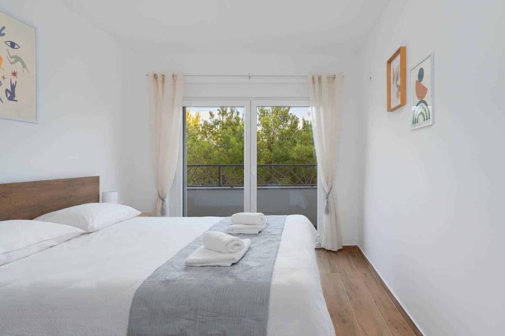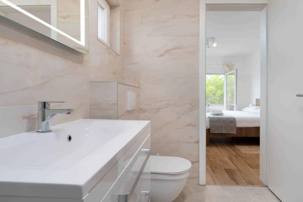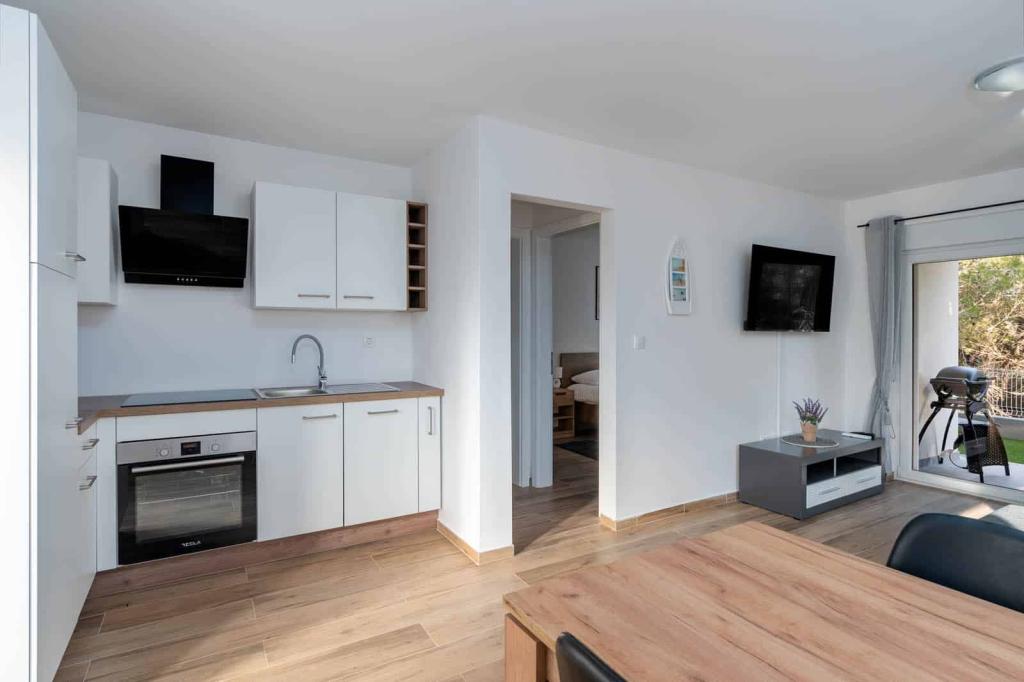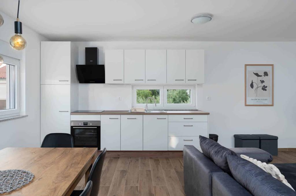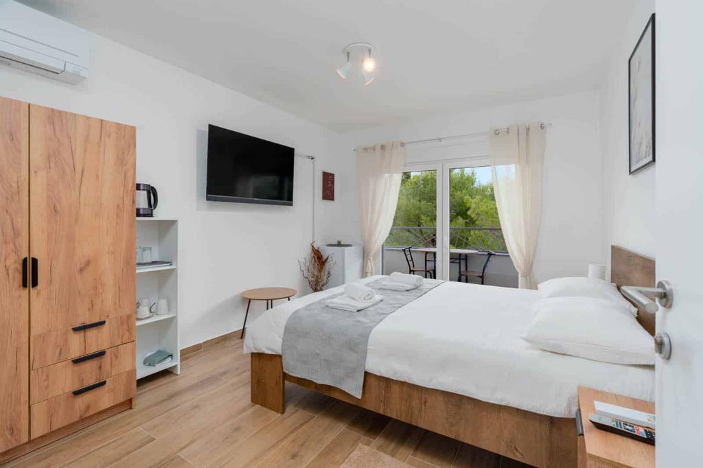 Naše apartmány Vir se nacházejí na výjimečném místě, jen pár kroků od krásné pláže, která nabízí klidnou a odpočinkovou dovolenou u Jaderského moře. Moderní architektura budovy nabízí krásný výhled do okolí a na moře a poskytuje pocit spojení s přírodou. Každý z našich apartmánů na ostrově Vir je prostorný a elegantně zařízený s důrazem na pohodlí a estetiku. Naše apartmány Otok Vir mají plně vybavenou kuchyň, která vám umožní připravit si vlastní jídlo, pokud chcete prozkoumat místní kulinářské možnosti. Ložnice jsou prostorné a pohodlné, vybavené kvalitními postelemi a povlečením, které zajistí klidný spánek po dlouhém dni stráveném prohlídkou ostrova. Moderně vybavená koupelna se sprchovým koutem vám umožní osvěžit se po slunečném dni na pláži. Dále jsou vybaveny klimatizací, myčkou, mikrovlnnou troubou, kávovarem, TV s plochou obrazovkou, bezdrátovým připojením k internetu a parkovacím místem.