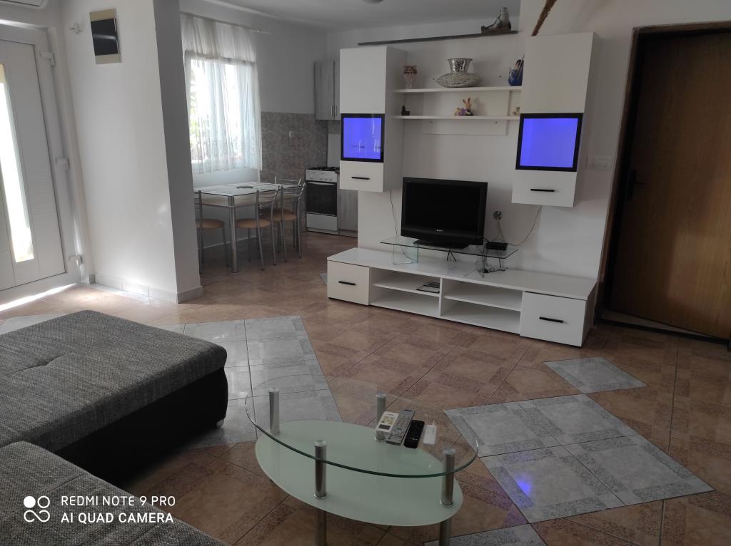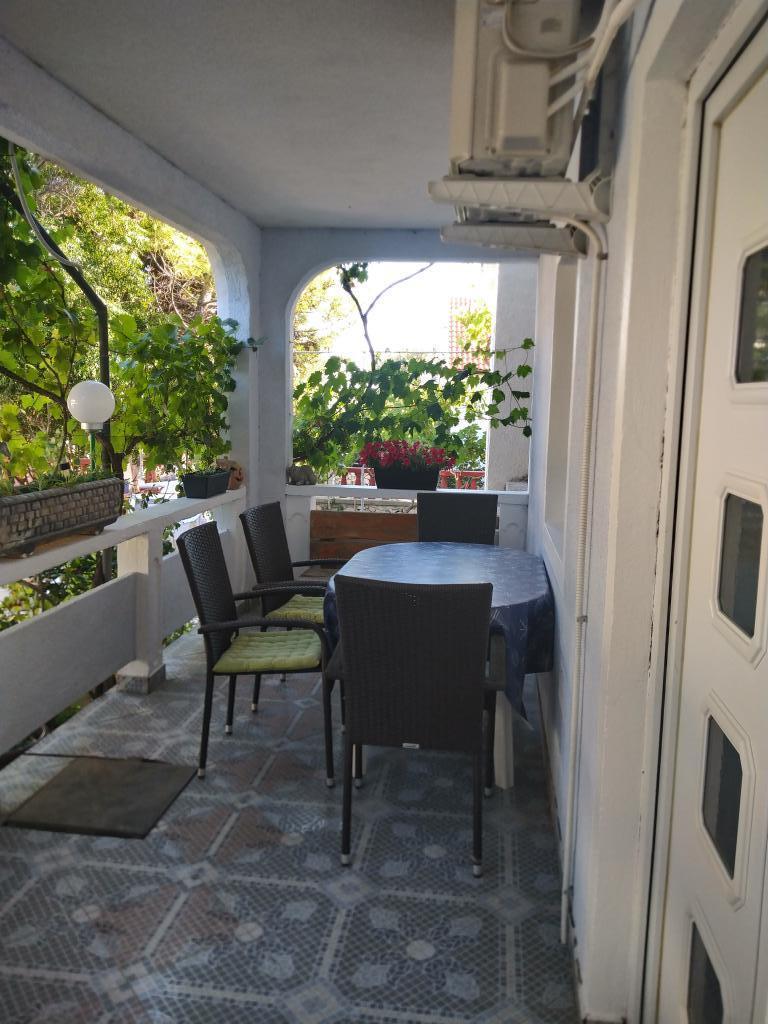 Plně vybavený apartmán cca 70m2. . 2 ložnice, obývací pokoj (TV, SAT TV, DVD, internet, klimatizace), kuchyň, koupelna, velká terasa s výhledem na moře, parkování, gril... 50m od pláže...