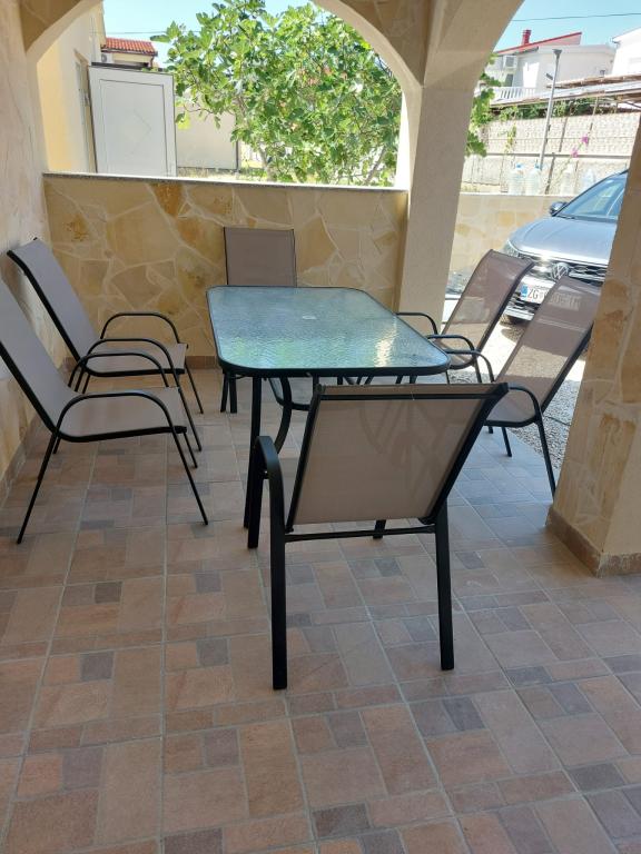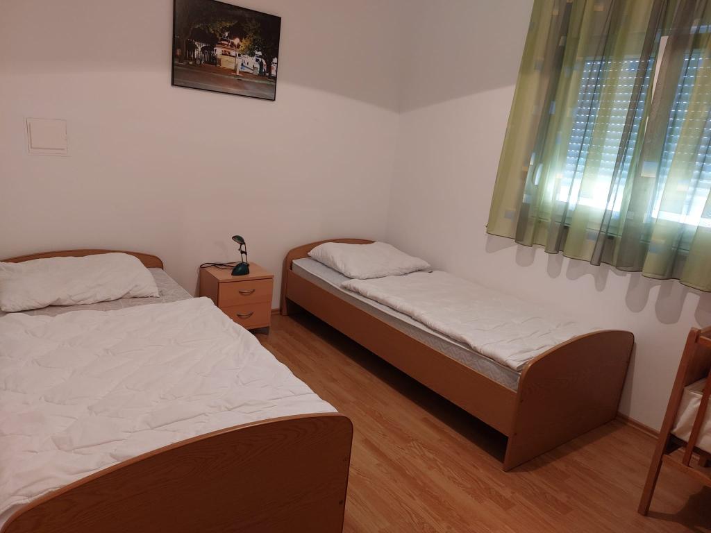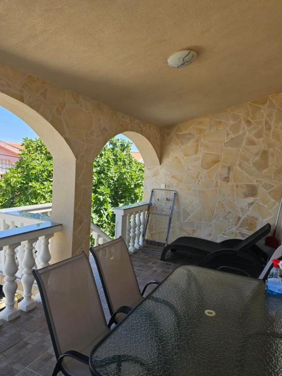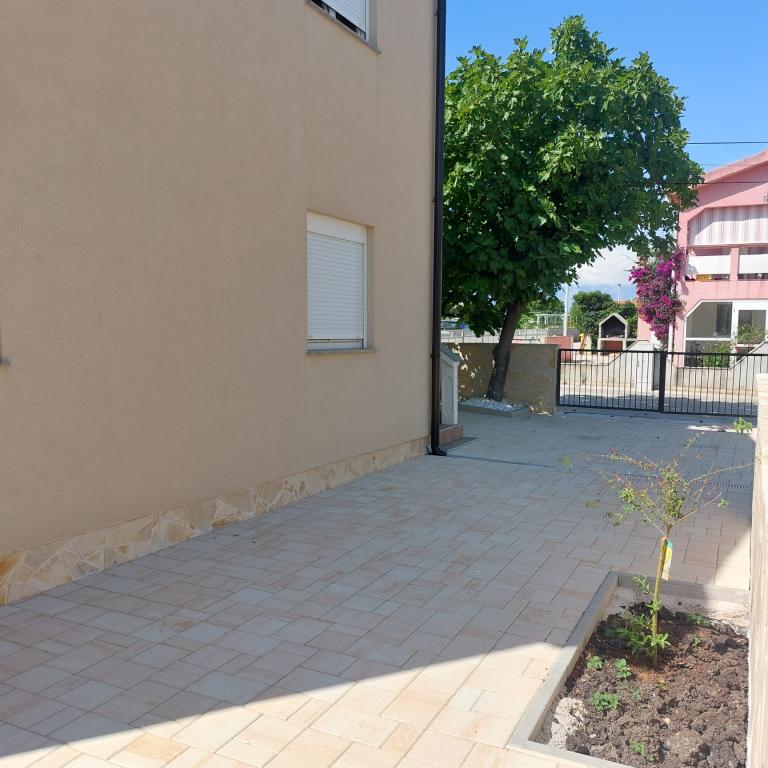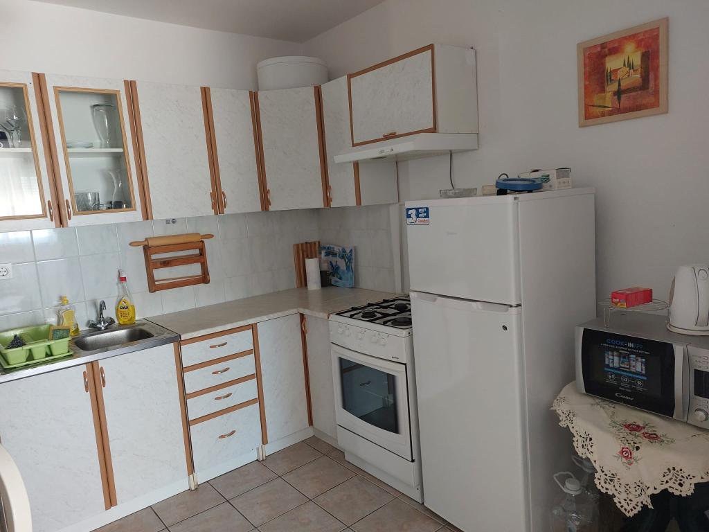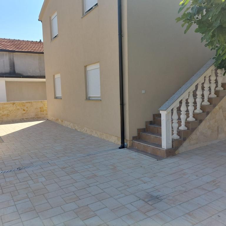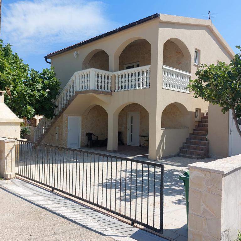 Dva byty k pronájmu s prostornými terasami v klidné části ostrova Vir. Vhodné pro páry nebo rodiny s dětmi. Pláž a veškeré základní vybavení se nachází 300 m od budovy. Ke každému bytu náleží dvě parkovací stání a možnost využití pece.