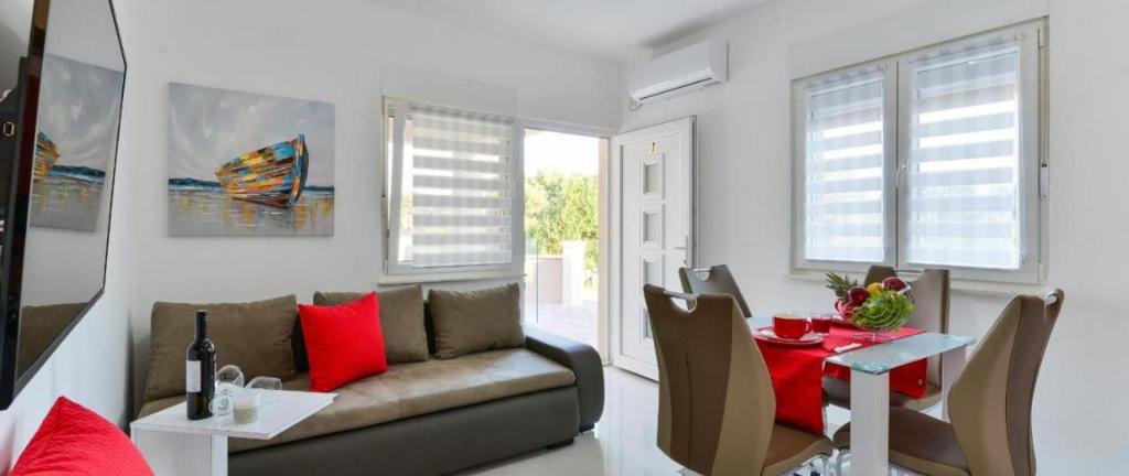 V centru krásného ostrova tří tváří, ostrova Vir, jsou apartmány Velić, jen 30 minut jízdy od letiště v Zadaru, a je k dispozici TAXI služba. Apartmány jsou navrženy tak, aby poskytovaly pohodlnou a bezstarostnou dovolenou v klidném prostředí. Dvůr domu poskytuje bezplatné parkování, grilování a je oplocený a bezpečný pro nejmenší. V domě jsou 3 ubytovací jednotky. V přízemí jsou 2 komfortní apartmány 2+1 a luxusní apartmán v patře se 3 terasami. Atraktivní centrální pláž Jadro je vzdálená pouhých 15 minut chůze a o něco klidnější pláž Lučica s výhledem na ostrov Pag 10 minut chůze. Supermarket, pekárna, lékárna a podobná zařízení jsou jen 5 minut chůze od hotelu.