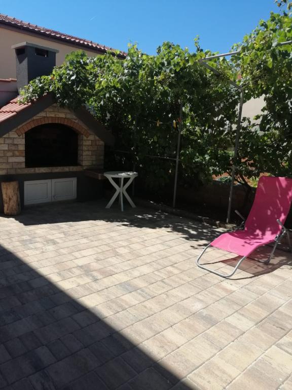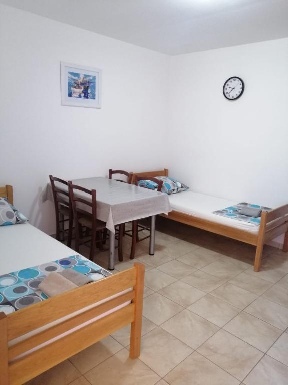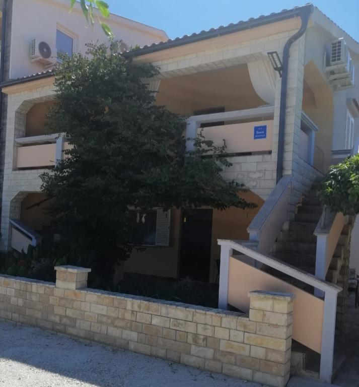 Ostrov Vir, osada Velika Slatina, pronajímáme 2 apartmány v prvním patře budovy se samostatnými vchody, každý pro 4 osoby. Apartmány se nacházejí 350 metrů od moře (upravená oblázková pláž s café barem), mají klimatizaci, TV, neomezený internet zdarma, gril ve dvoře a hlídané parkoviště, každý apartmán má vlastní terasu.
