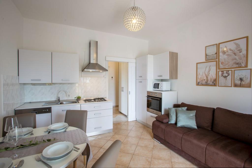 Naše apartmány se nacházejí v první řadě u moře a jsou plně vybavené. Každý apartmán má samostatný vchod a terasu s výhledem na moře. Díky blízkosti moře jsou ideální pro rodiny s malými dětmi. Pláž je mělká s pískem. Všichni naši hosté mají k dispozici 1 bezplatné parkovací místo v našem dvoře.