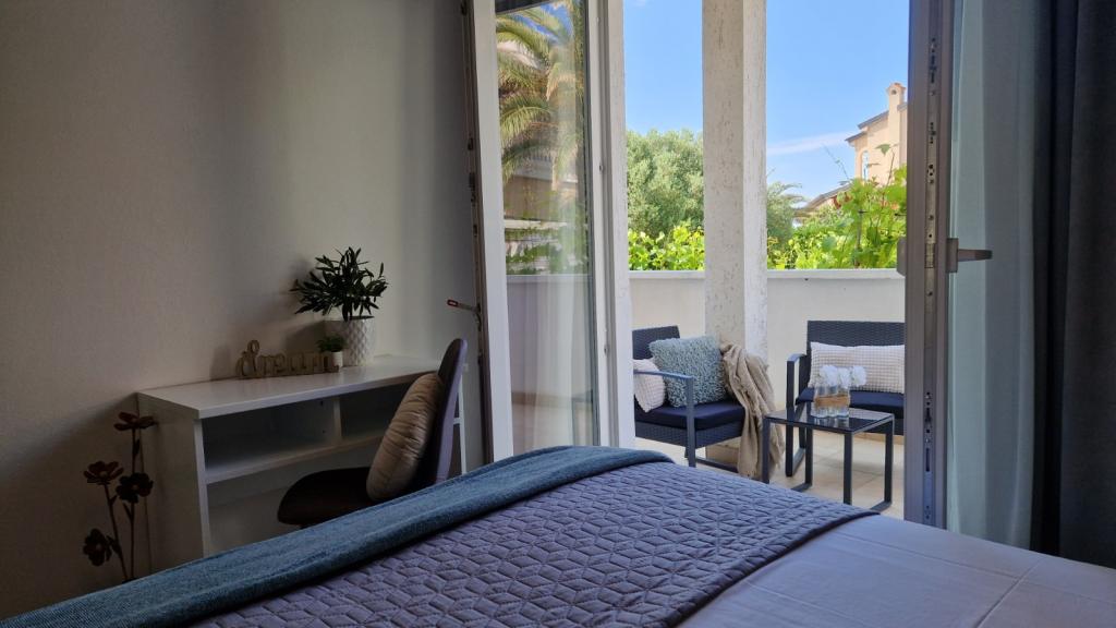 Krásná lokalita s klimatizovaným apartmánem a obrovskou terasou s výhledem na moře. Byt má vše. Plně vybavená kuchyň se vším, co jsme potřebovali. V ložnici je nejpohodlnější postel, koupelna je prostorná a pěkně zařízená. S čistotou jsme byli velmi spokojeni, protože vše je opravdu čisté. Těšila jsem se na ranní kávičky na terase s výhledem na moře a krásnou zelenou zahradu a děti chtěly vždy jíst jen na terase, protože jim bylo příjemně. Hostitelé jsou velmi přátelští a nápomocní. Strávili jsme naši dovolenou velmi dobře, protože jsme opravdu odpočívali na tak skvělém místě. Chvála!