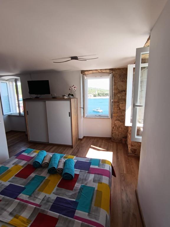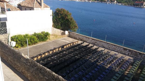 Byt je přímo u moře, s okny s výhledem na poloostrov s kostelem na druhé straně zálivu. Večer můžete sledovat film z každoročního kina z oken.