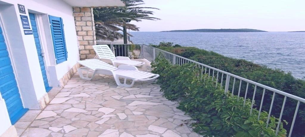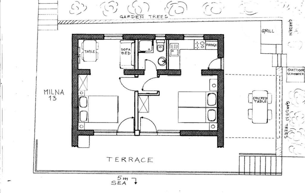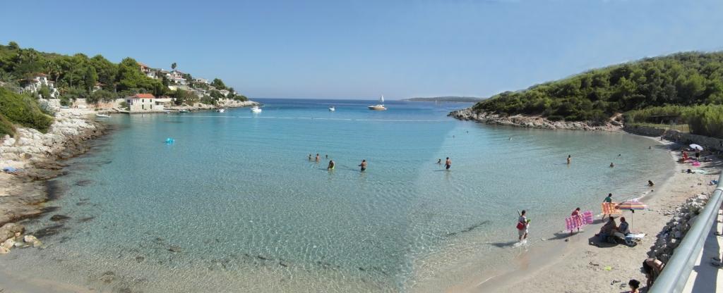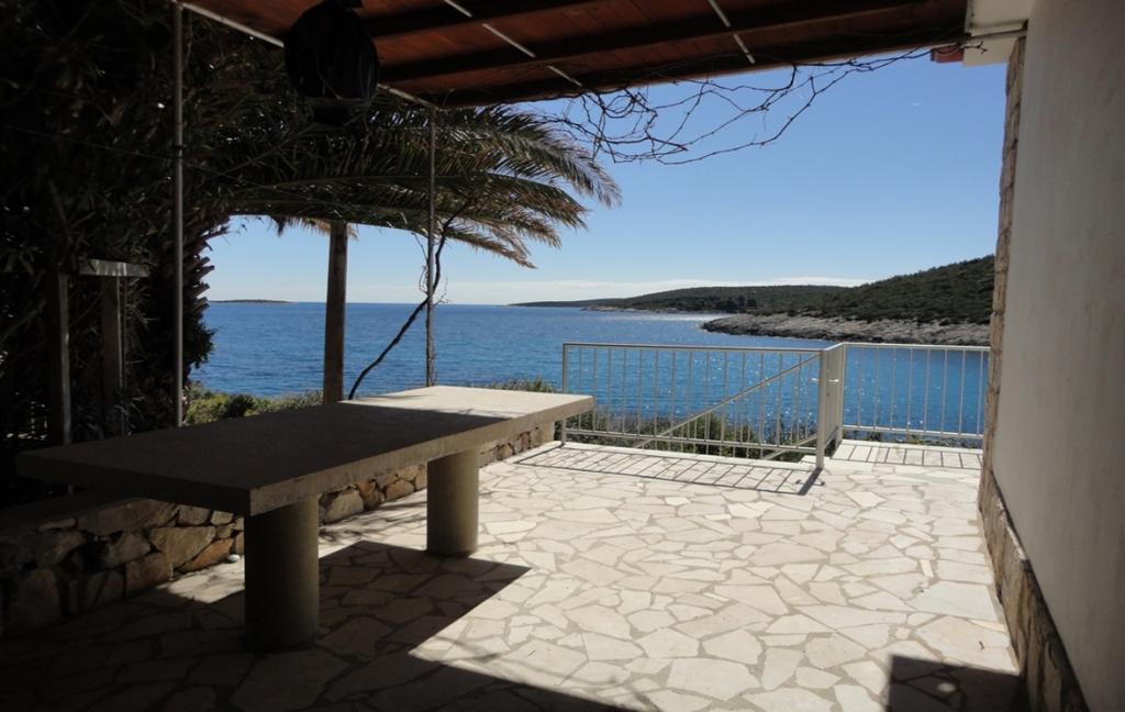 Dům k pronájmu u moře; výjimečná lokalita - první řada u moře, zátoka Milna (ostrov Vis), ideální pro rodinu. Dům je samostatně stojící, s vnitřní plochou 50 m2, obklopený terasou o rozloze 60 m2 a zahradou (160 m2) se zelení, která vám zajistí soukromí a příjemnou dovolenou. Hned vedle domu, 5 metrů od terasy, si můžete zaplavat, potápět se nebo skákat do moře. Po návratu z moře je k dispozici venkovní sprcha. Na terase jsou dvě lehátka, gril a betonový stůl k posezení a stolování s výhledem na modré moře, který si můžete užívat celý den. Část terasy nad stolem a grilem je zastřešená, což poskytuje stín/ochranu po celý den. Dům je klimatizovaný, má neomezený internet Wi-Fi, LCD TV, sporák s plynovým a elektrickým sporákem, velkou ledničku (230 litrů) a vše ostatní potřebné k vaření/pečení a servírování. Soukromé parkoviště je vzdálené 250 m; k domu vede betonová pěší cesta podél pobřeží.