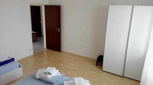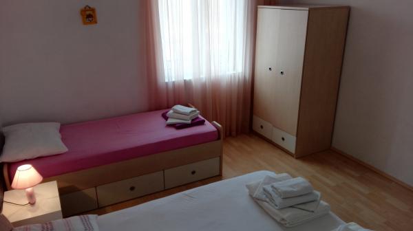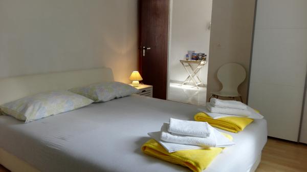 Vítejte v našem komfortním a prostorném bytě, který se nachází v prvním patře rodinného domu. Byt je 100 metrů čtverečních. V uzavřeném a uzavřeném dvoře rodinného domu je parkoviště pro více aut, včetně hostitelského karavanu. Dveře loděnice jsou zavřené, takže vaše auta jsou v bezpečí. 5 min chůze na pláž a 10 min do centra vody. V bezprostřední blízkosti apartmánů se nachází velké nákupní centrum Tommy, cateringová obchodní společnost Marenda, restaurace na mořské plody, směnárna a mini pekárna.