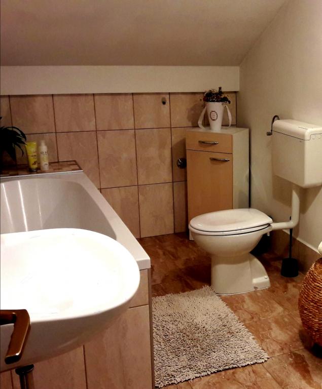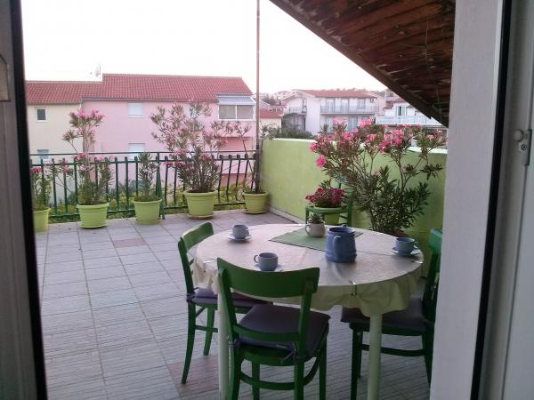 Pronájmu pěkný a moderní byt v podkroví rodinného domu. Byt je 130 m2, má dvě ložnice s 5 lůžky, kuchyň, koupelna, obývací pokoj, vše plně zařízený. Terasa 60 m2, zdobené pro romantické večerní posezení. Byt se nachází v klidném místě, a vše je na dosah ruky, obchody, trhy, restaurace, nemocnice, banky, ... oblázková pláž (modrá pláž) ideální pro ideální dovolenou.