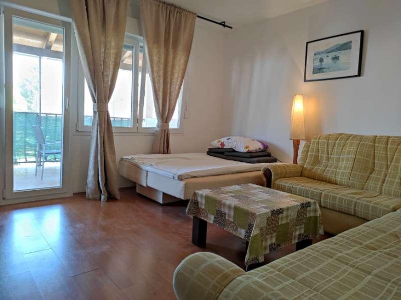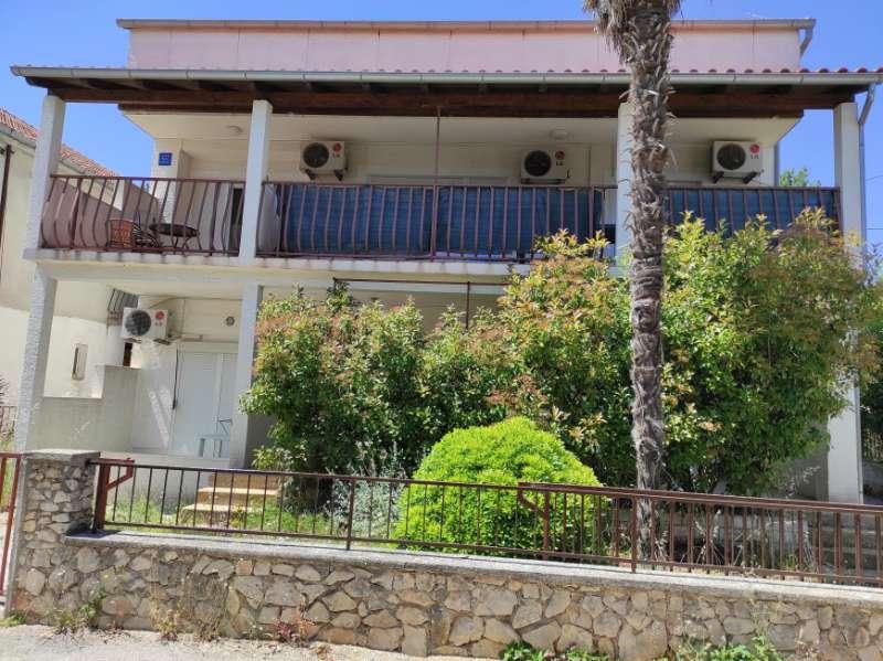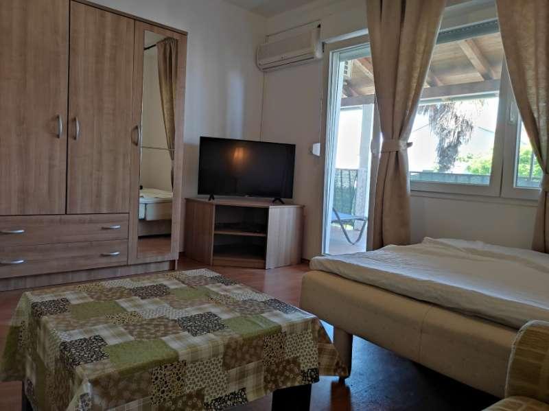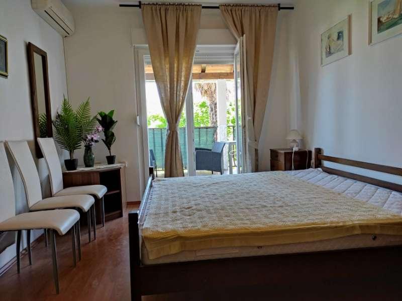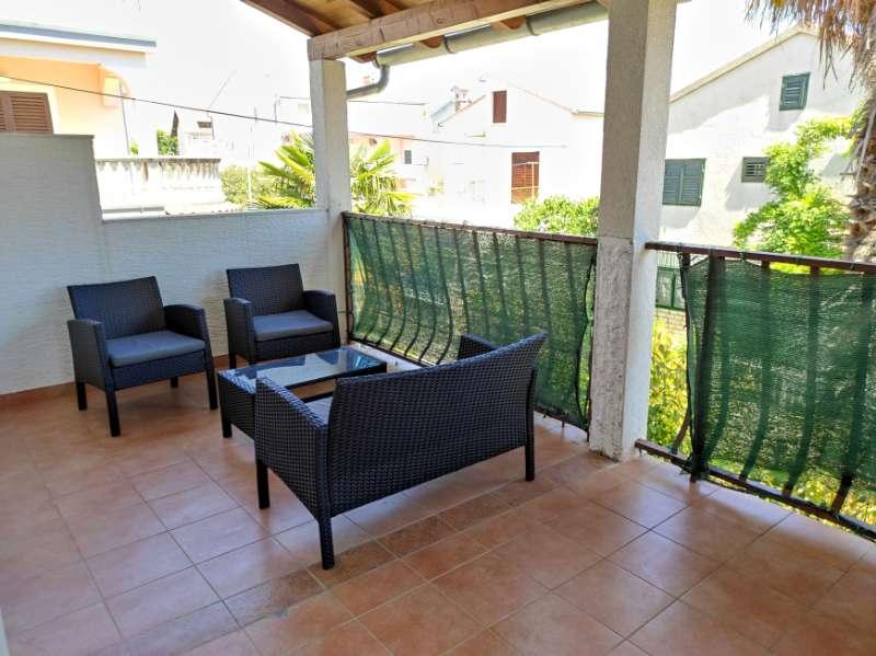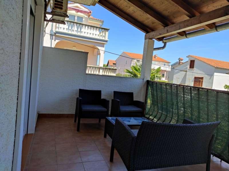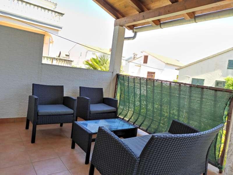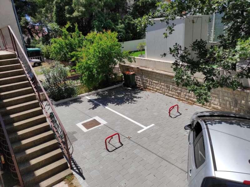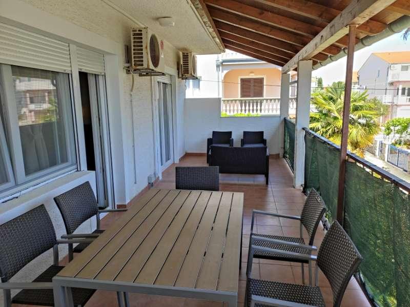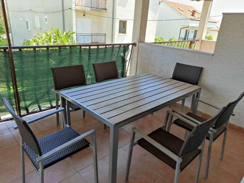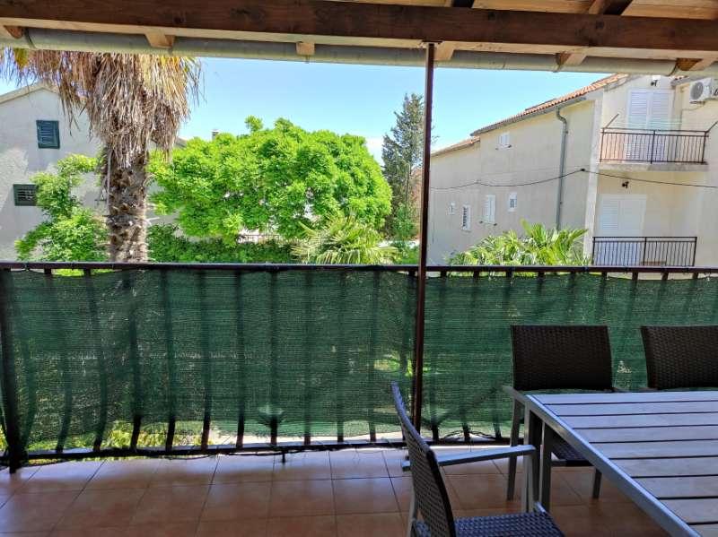 Byt se nachází v klidné ulici s krytou terasou a je vybaven 2 samostatnými koupelnami, 2 sprchami a 2 toaletami, kuchyní, klimatizací, TV, wi-fi, pračkou a obývacím pokojem na terase. Ve dvoře je parkovací místo a gril. Byt se nachází v blízkosti hotelu Olympia Sky, obchodů, pláží a pekáren. Adresa je 16A ze Splitu