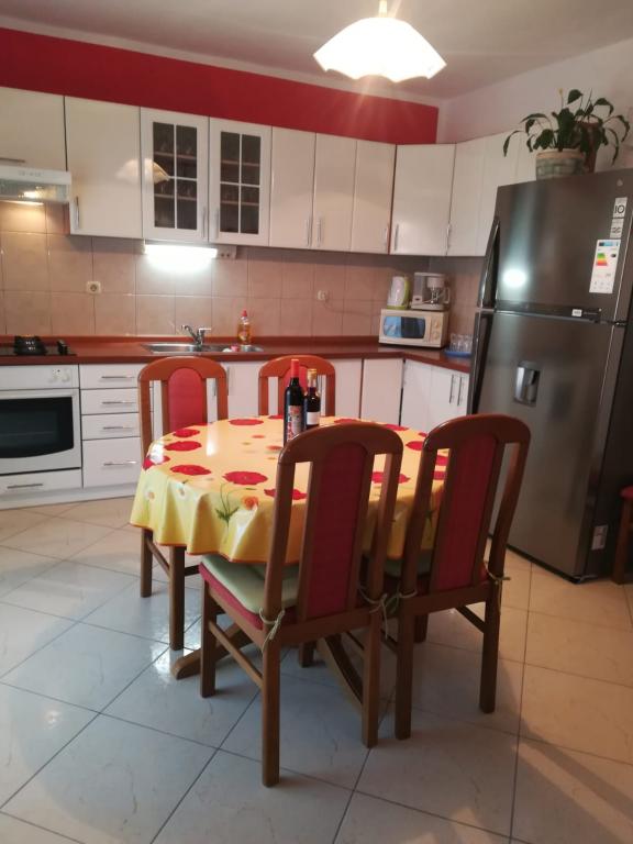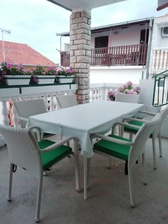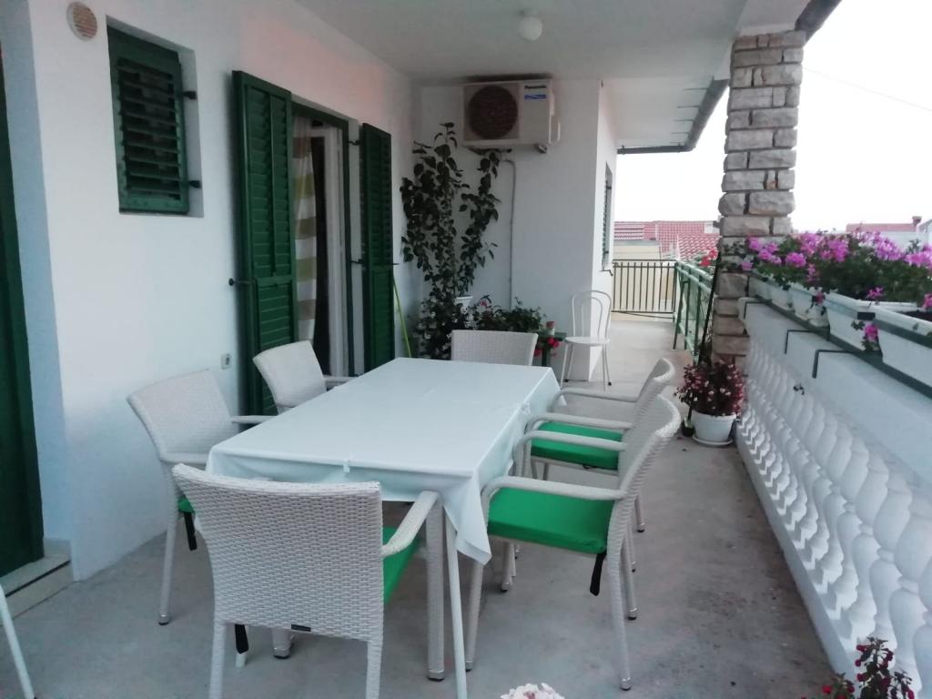 Komfortní a moderní byt o 110 m2, ideální pro jedno velké nebo dva malé rodiny, které chtějí dovolenou společně. To se nachází v centru města, v prvním patře domu. Skládá se ze tří ložnic s manželskou postelí, jedna s možností přistýlky, dvě koupelny (jedna se sprchovým koutem a jedna s vanou), předsíň, prostorná kuchyň, jídelna, obývací pokoj a velká a krásná terasa. Centrum města pěšky, to bude trvat několik minut. Má také parkoviště pro dvě auta a možné použití grilu ve dvoře. Poznámka: použití klimatizace není zahrnuta v ceně a v období od 16. 07. -20. 8. žádoucí posuny v sobotu.