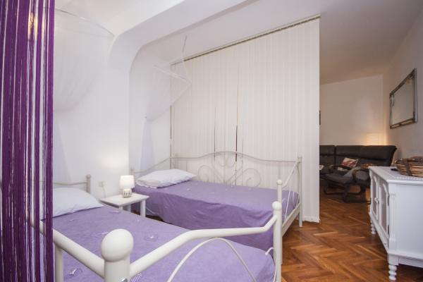 Romantický apartmán Lilly se nachází v klidném prostředí krásné pláže Vodice a očekává, že budete mít dobrý odpočinek a relaxaci. Ve zrekonstruovaném bytě (70 m2) relaxačních fialových odstínů začněte ráno na terase (10 m2) s kávou a dobrým čtením, s výhledem do zahrady, která je plná středomořských rostlin a květin. Apartmán Lilly se nachází v přízemí rodinného domu. Ve dvoře je k dispozici bezplatné parkoviště pro hosty a gril. V blízkosti se nachází krásná oblázková pláž s přírodním stínem (7 min chůze), kde můžete po slunečném dni projít a zažít západ slunce. Promenáda vás dále zavede do centra Vodic, kde na vás čeká mnoho vynikajících restaurací, kaváren a klubů. Večer můžete strávit na terase se sklenkou dobrého vína a svíček nebo navštívit nedaleký diskotékový klub Hacienda a klub Exit. Výhodou ubytování v Aparmana LILLY je, že nabízíme kvalitní a krásné ubytování, ve výborné lokalitě, kde většina z nich může být provedena pěšky, a parkování je zdarma. Nabízíme další zařízení: jízdní kola, kajaky, organizovaný rybolov na kajaku. Vodice se nachází jen 10 km od Šibeniku, které má bohaté kulturní a historické centrum, a jeden z nejkrásnějších katedrál sv. Nedaleko jsou krásné dva národní parky, vodopády Krka a Kornati. Sledujte nás na FB Apartment Lilly, Vodice, Chorvatsko