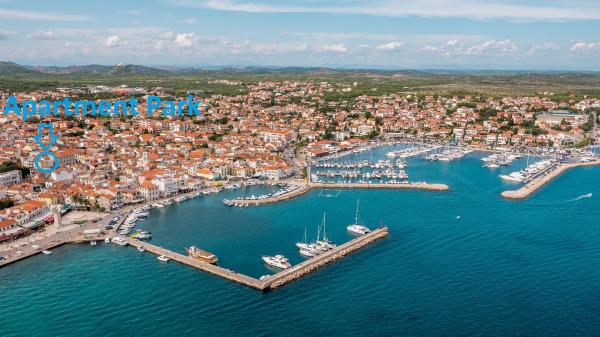 Byt k pronájmu - rekreační dům (150 m2) v centru města, 200 m od moře. Byt zabírá celý dům, který se nachází na klidném místě v centru města, v těsné blízkosti nejstarší park, ve kterém se byt jmenován. Central Park je nyní v ničem neliší od jiných parcích, ale jeho příběh sahá daleko do minulosti města, před Vodice dospělý a jeden z nejoblíbenějších turistických destinací pro dovolenou v Dalmácii. V bytě se nachází pouhých 3 minuty chůze od moře (100 m) a nedaleko je obchod, pekárna a restaurace, je maximální relaxaci a požitek z vaší dovolené. Byt je 150 m2, plně vybavený a skládá se z: - Přízemí: obývací pokoj, jídelna, kuchyň, koupelna, místnost na odkládání věcí - První patro: - pokoj A: 2 lůžka (14 m2) - pokoj B: 2 samostatnými lůžky (14 m2) - Koupelna - Ve druhém poschodí: - pokoj C: 4 lůžky (22 m2) - Terasy