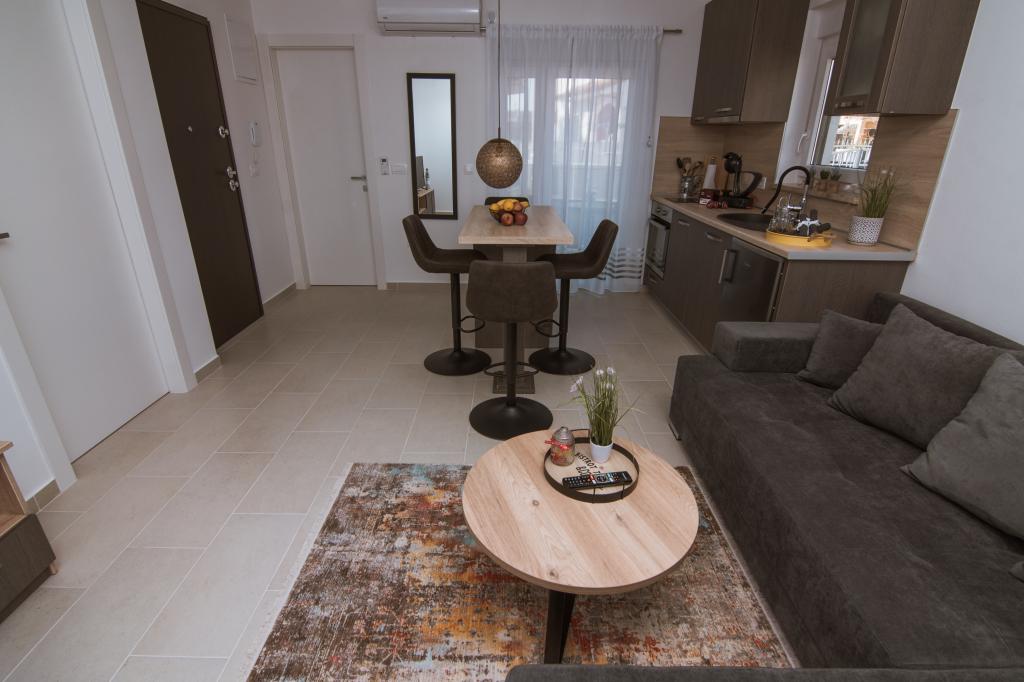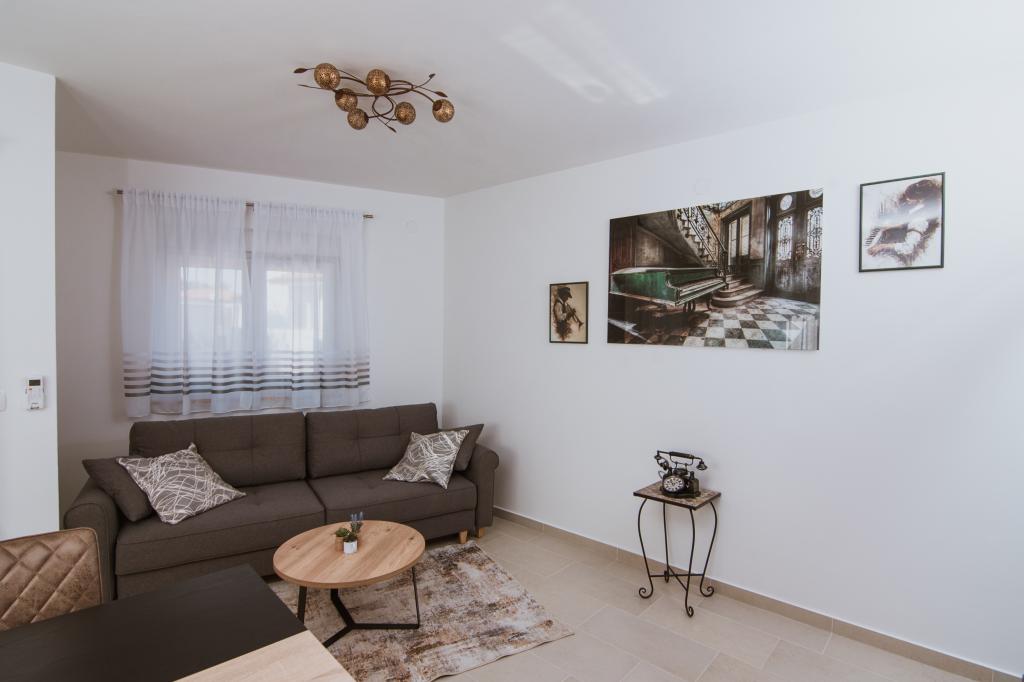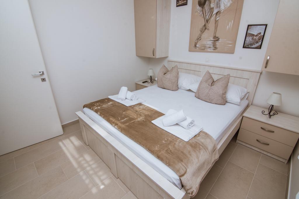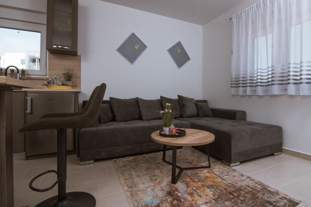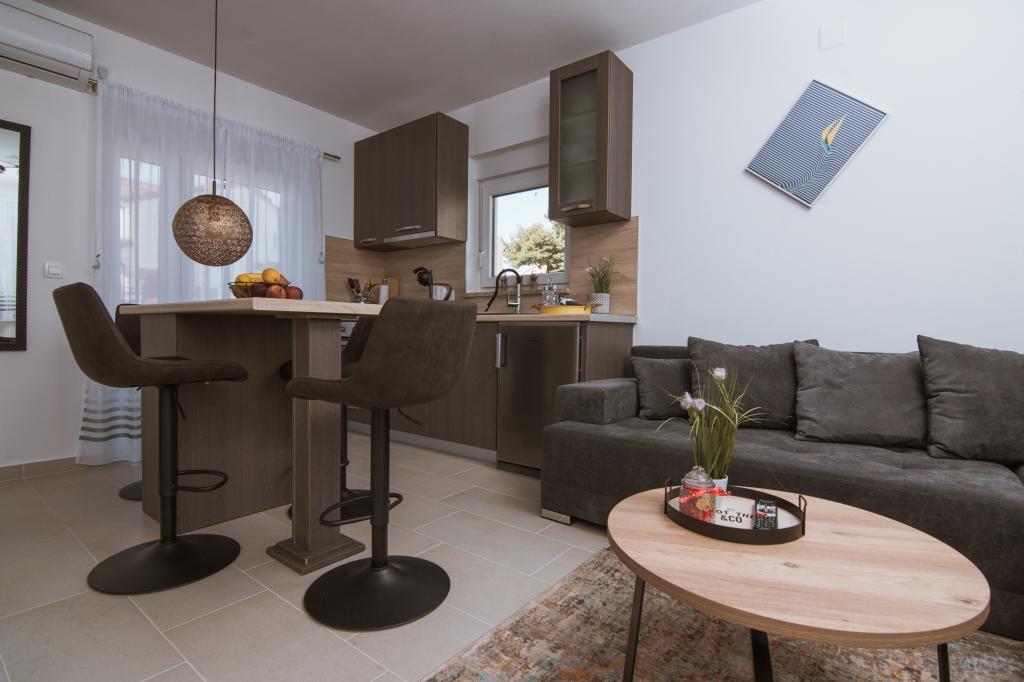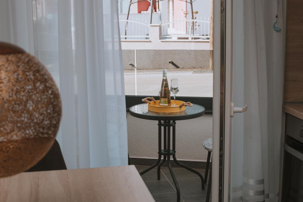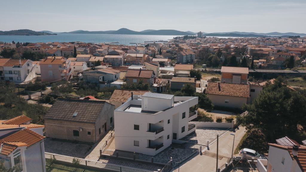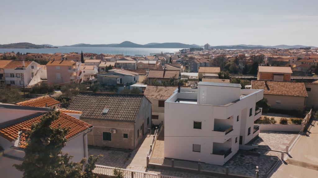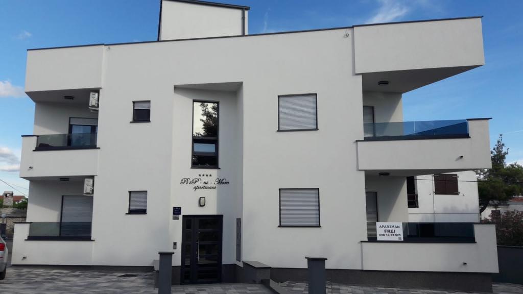 Apartmán PiiP-ni-More ve Vodicích, kapacita je 2 + 2, cca 55 m2, se nachází v nově postavené budově v malé klidné ulici. V bytě je koupelna, prostorný obývací pokoj s jídelním koutem a plně vybavená kuchyň s různými možnostmi vaření nádobí, včetně myčky, pračky, trouby, indukční varné desky, lednice, kávovaru, rychlovarné konvice, topinkovače ... V bytě je krásný intimní balkon částečně s výhledem na moře a možností využití střešní terasy. K dispozici je také prostorná ložnice se samostatnou TV. Moře a hlavní městská pláž jsou vzdálené asi 600 metrů a do centra města se snadno dostanete pěšky za deset minut. Trh, restaurace, obchody, autobusové nádraží jsou vzdálené asi patnáct minut chůze.