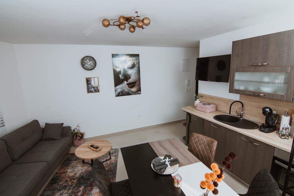 Vysoký standard zařízení. Všechno nové. Čistota na nejvyšší úrovni. Každodenní péče hostitele o jeho údržbu. Kuchyňské potřeby (nové hrnce, pánev, talíře, myčka, trouba, vše potřebné), koupelna (pračka, sušička, žehlička v koupelně). Pohodlné postele. Výkonná wifi s možností zapnutí YouTube. Efektivní klimatizace, automaticky ovládané žaluzie.V tomto domě jsem se cítil jako doma, mám vše, co potřebuji. Krásný výhled na moře z terasy apartmánu. Hostitel podporoval. Měli jsme malou závadu v bytě, okamžitě zareagoval, pomohl. Největší výhodou tohoto místa jsou lidé, kteří provozují zařízení. Tedy hostitel a jeho žena. Jejich pohostinnost byla úžasná. Nikdy nezapomenu na vynikající kávu, na kterou jsme byli mnohokrát zváni. Před mým příjezdem jsem měl velmi dobrý e-mailový kontakt s majitelem. Přijal nás (byly s námi 2 malé děti) mnohem dříve před 10 hodinou na mou žádost. Po příjezdu čekalo v lednici vychlazené víno a voda. Děkuji ještě jednou! Byla to ta nejlepší dovolená! Pokud se vrátíme do Chorvatska, 100% půjdeme do Piip-ni-More