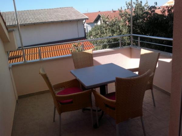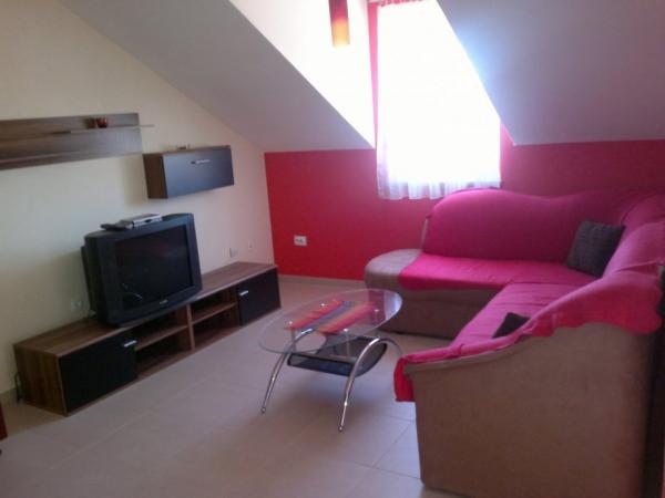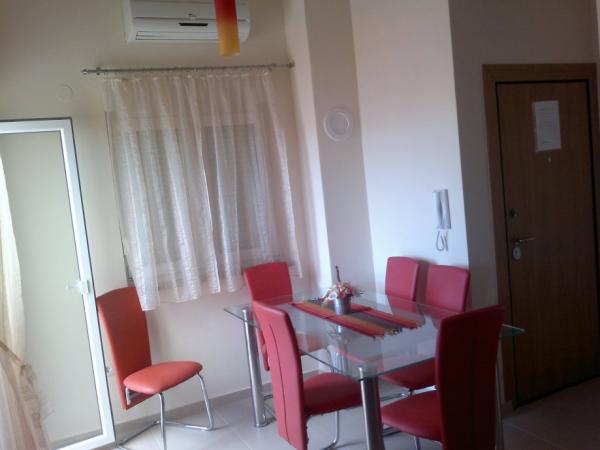 Apartmán 4 hvězdičky! Pro dovolenou v klidné části města Vodice (u hotelu Olympia), se nachází v patře domu, nové a moderně zařízených apartmánů o 45 m2. Byt se skládá z ložnice s manželskou postelí, koupelna a plně vybavená kuchyň s jídelnou a obývacím pokojem. V obývacím pokoji je možnost vytáhnout rohová sedací souprava do 2 přistýlek. Jídelna má přístup na terasu.
