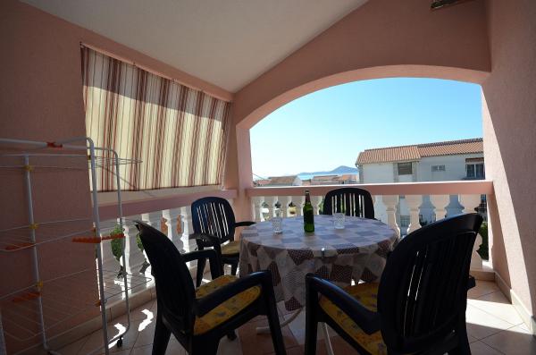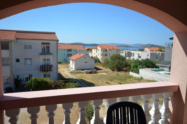 Nabízíme plně vybavené a zařízené apartmány v klidné části Vodice, pouhých 400 m od pláže a 900 m do města. Apartmány mají výhled na moře. Dům má uzavřený dvůr a parkoviště.