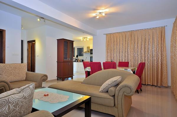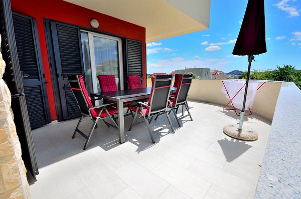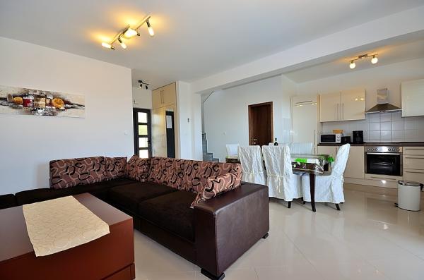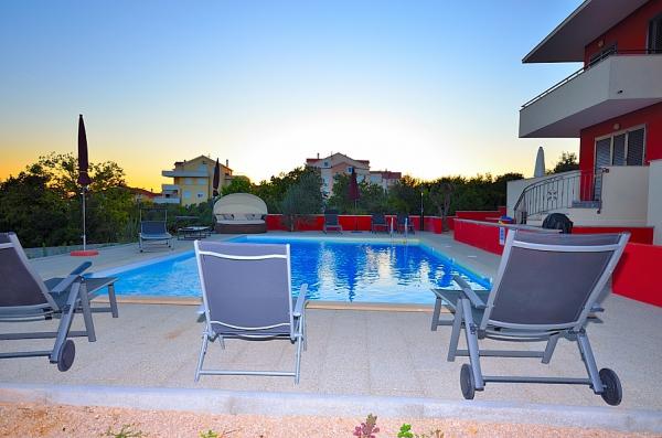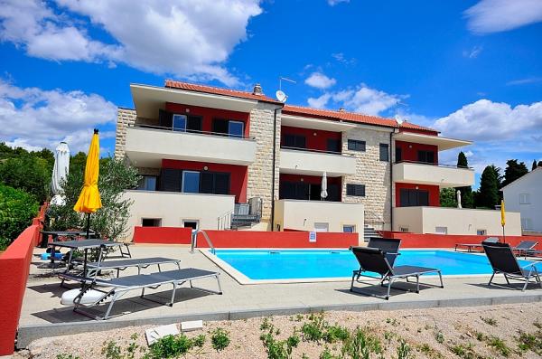 Vodice- nově postavený dům s domem u bazénu 6 2, 400 m od pláže, 500 m od Blue Beach (pláž s modrou vlajkou) Dům se skládá z přízemí, kde toalety, kuchyň a obývací pokoj s velkou terasou v prvním patře jsou tři ložnice, koupelna a terasa. Pokud jde o používání bazénu, 2-3 parkovacích míst, grilování, wi-fi, TV, satelit,
