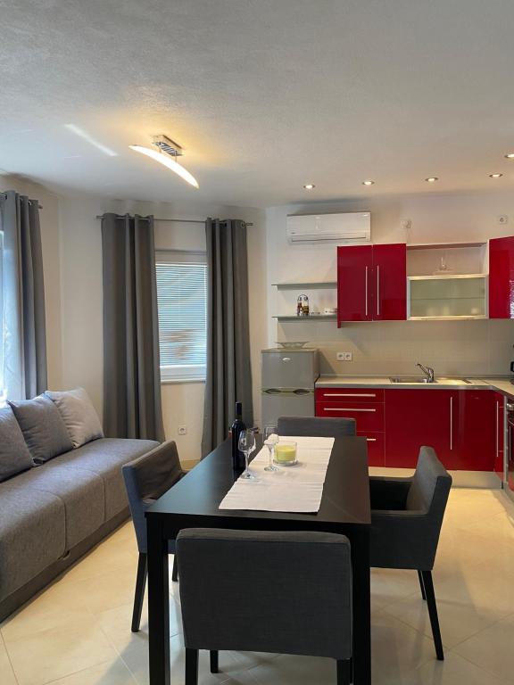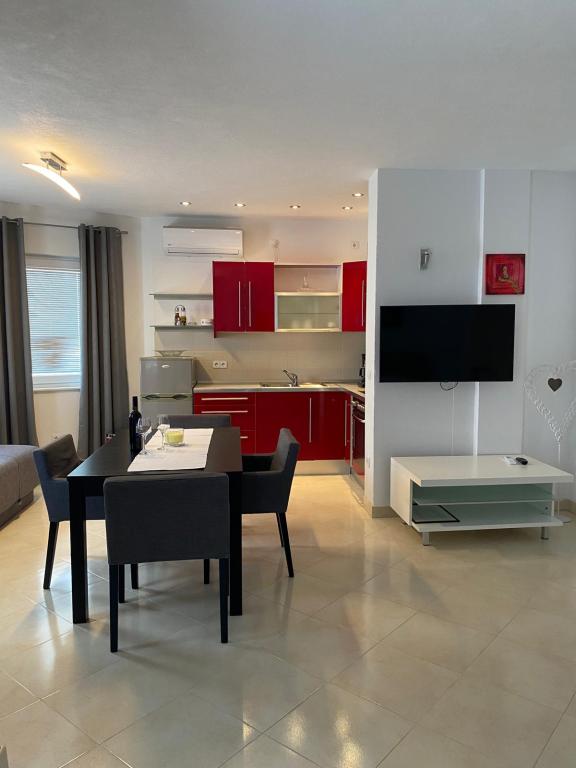 Moderně vybavené apartmány v klidné části Vodice, nemovitost se nachází 10 minut chůze od centra a 7 minut chůze od pláže. WiFi, klimatizace, satelit, pračka a parkování jsou v ceně.