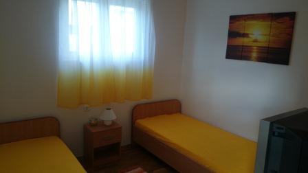 Dva nové apartmány v klidné ulici obklopené zelení, každý s vlastním vchodem (první a druhé patro). Každý apartmán má krytou terasu s posezením. Apartmány se nachází 3 minuty od obchodů, pekáren a restaurací a 5 minut na pláž a do centra města 10 minut chůze.