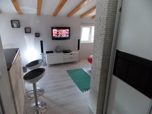 Byt čistý, dobře udržovaný, plně vybavený s velkou terasou, který se nachází v klidné oblasti. V blízkosti je pekárna a obchod, v blízkosti pláže s oblázky. Velmi přátelští majitelé, kterým děkuji a srdečně zdravím.