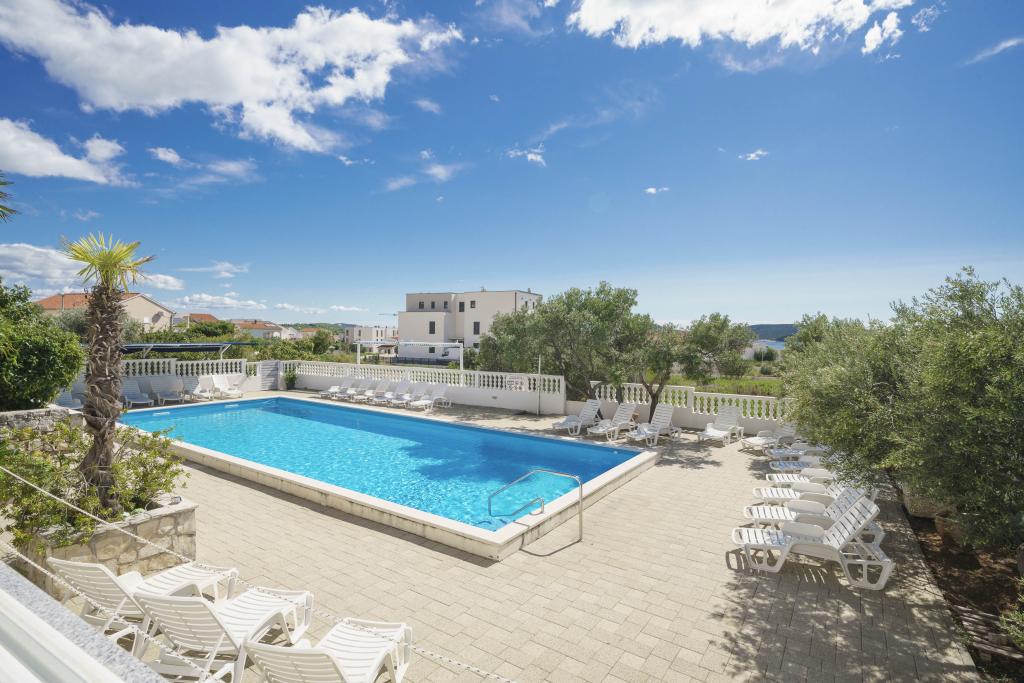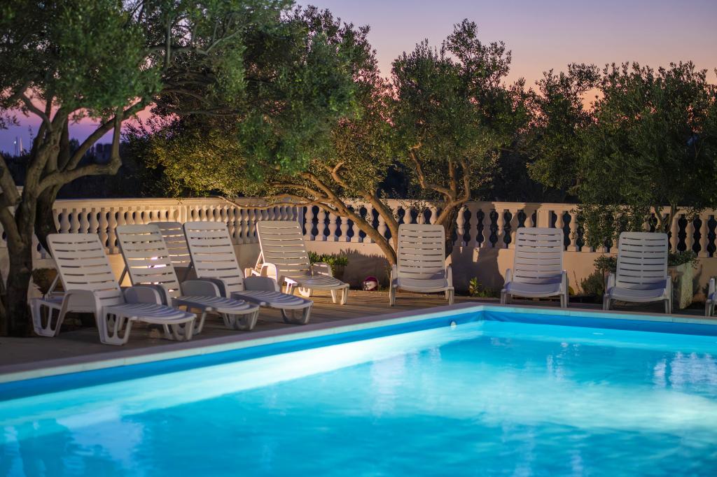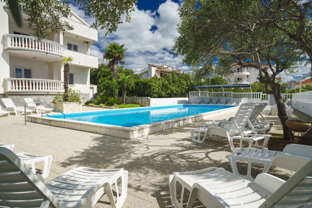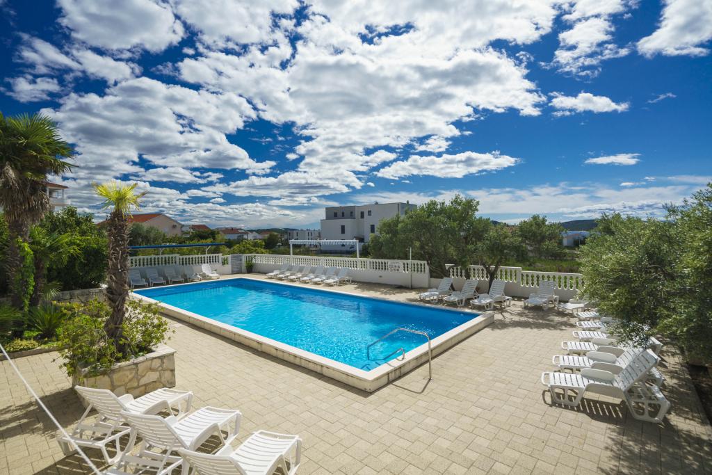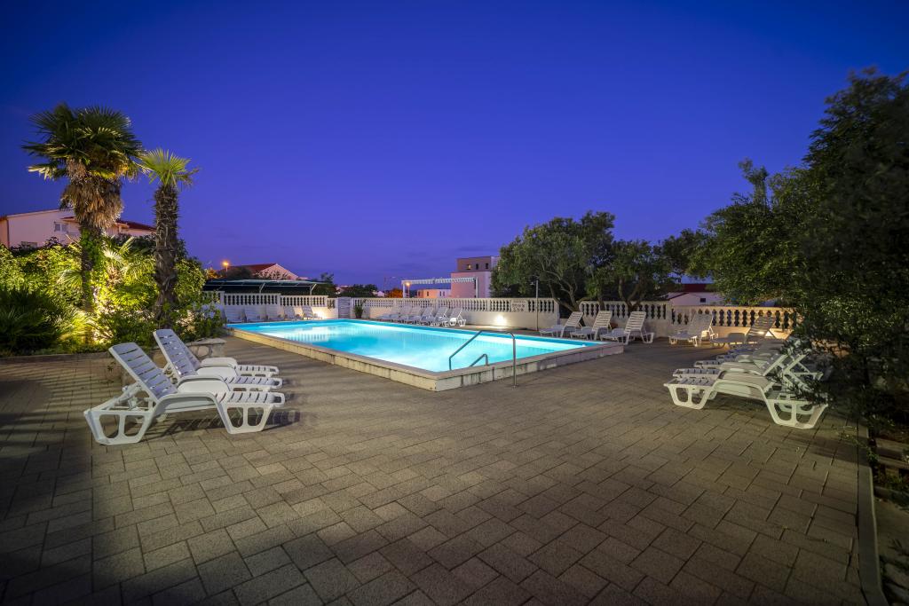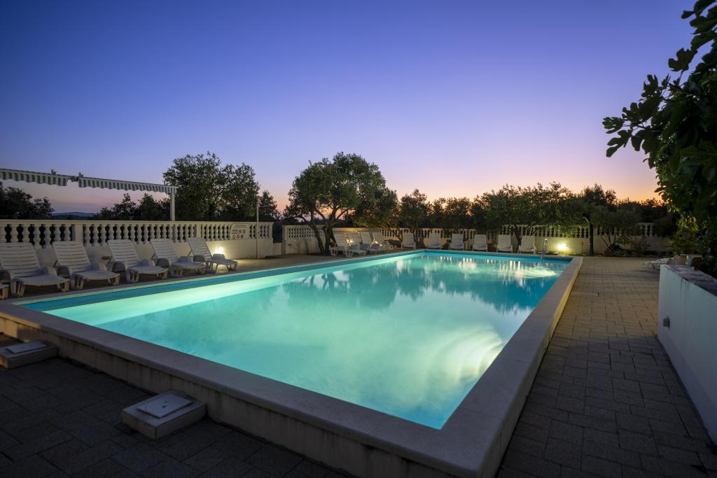 Společné, obdélníkový bazén (15m x 6m, hloubka 120-135cm) s vnitřním schodištěm, zahradní posezení, gril, venkovní sprcha, pračka za příplatek. Parkování je zajištěno před domem.