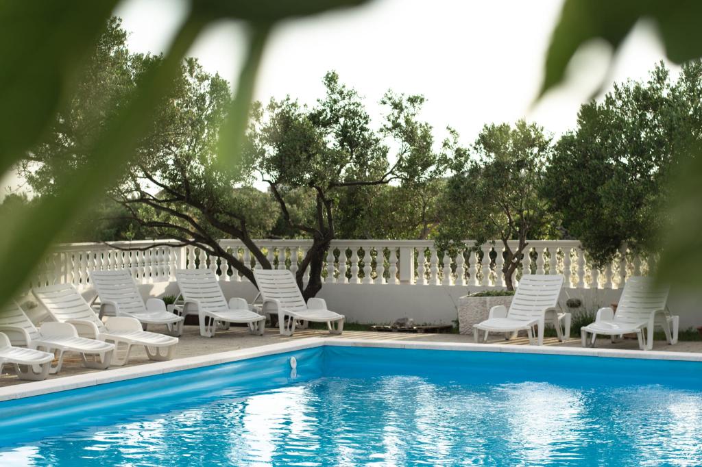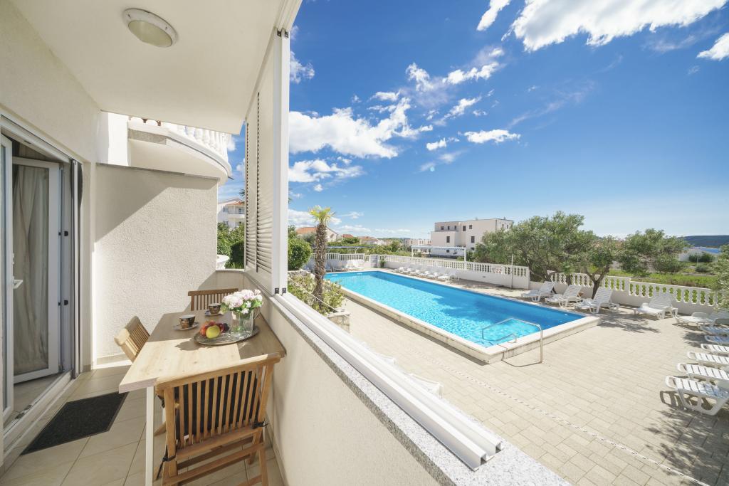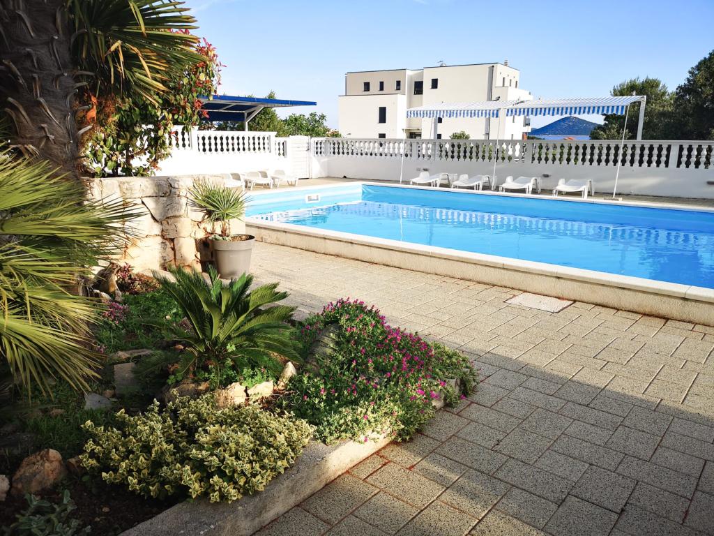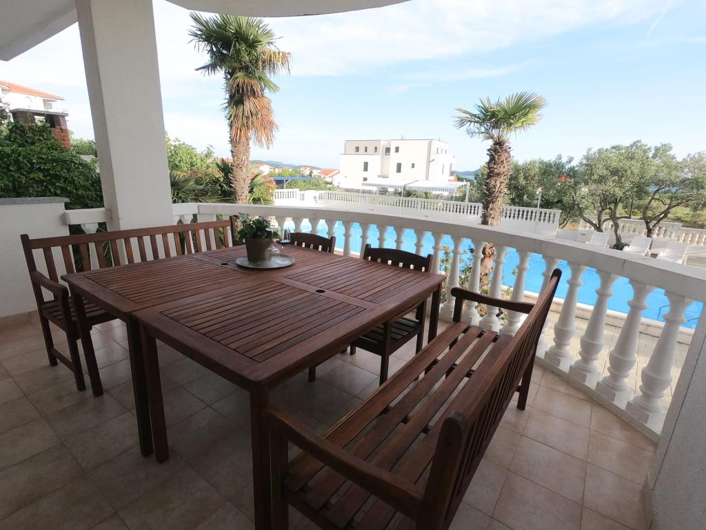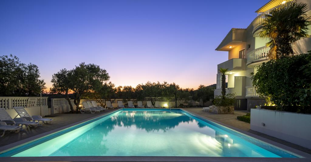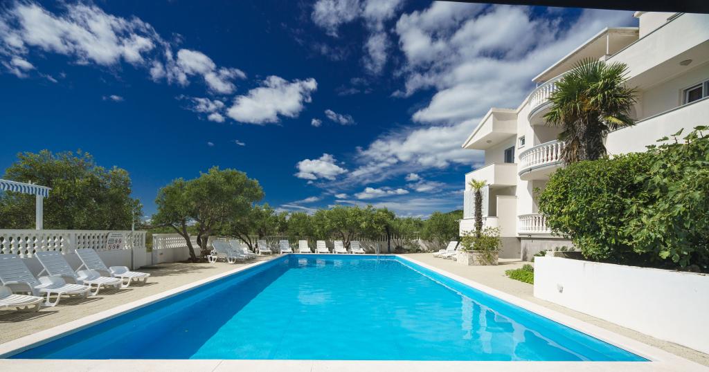 Společné, obdélníkový bazén (15m x 6m, hloubka 120-135cm) s vnitřním schodištěm, zahradní posezení, gril, venkovní sprcha, pračka za příplatek. Parkování je zajištěno před domem.