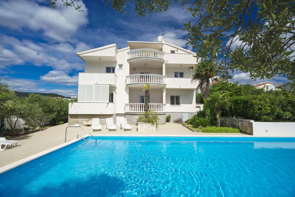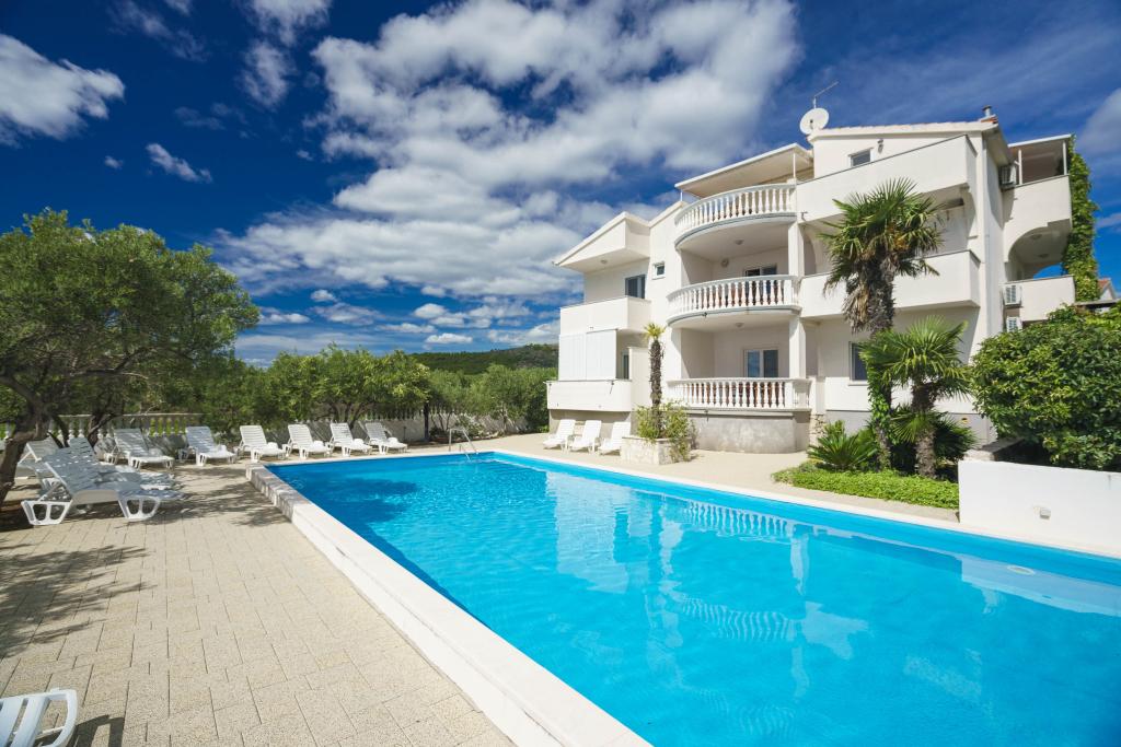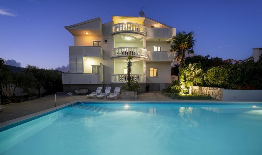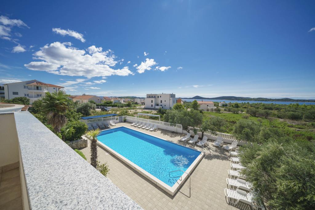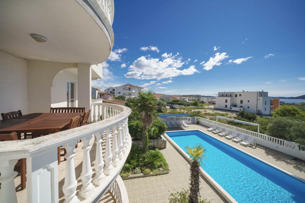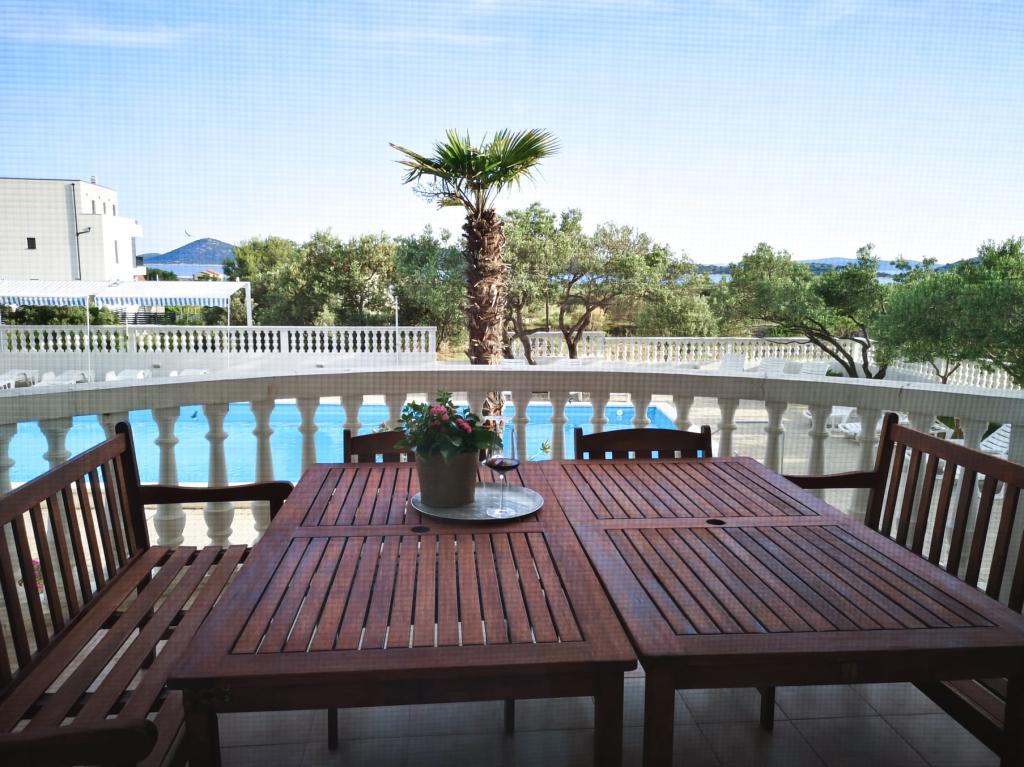 Společné, obdélníkový bazén (15m x 6m, hloubka 120-135cm) s vnitřním schodištěm, zahradní posezení, gril, venkovní sprcha, pračka za příplatek. Parkování je zajištěno před domem.