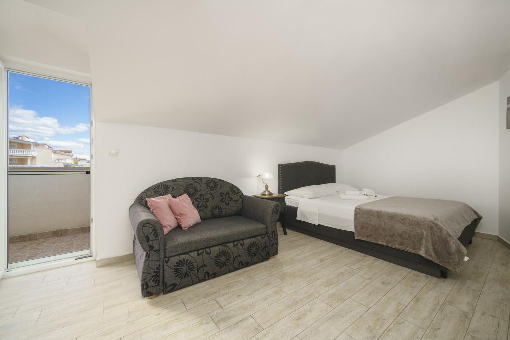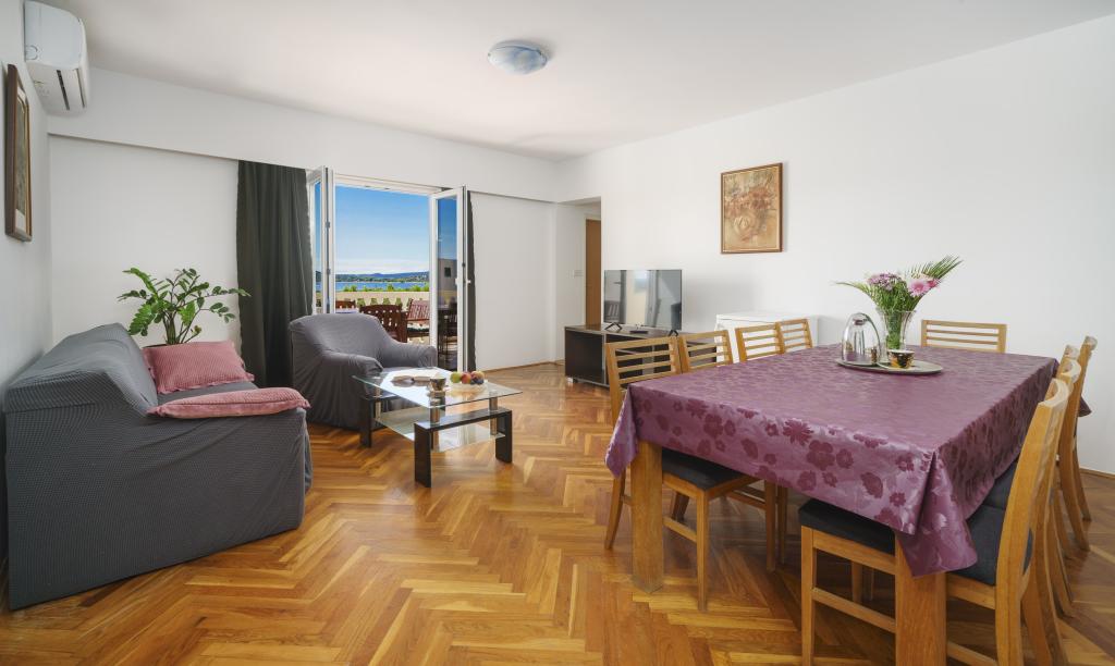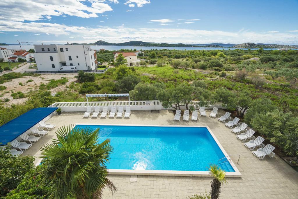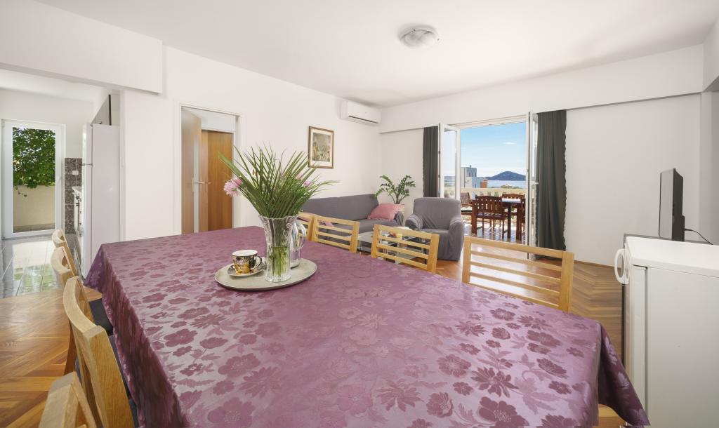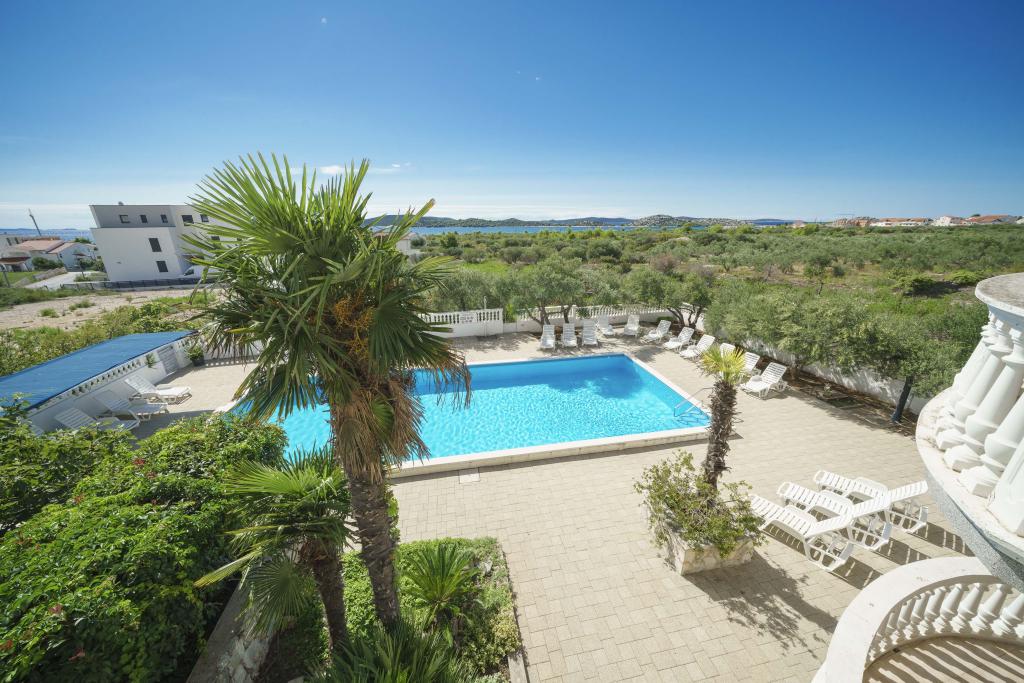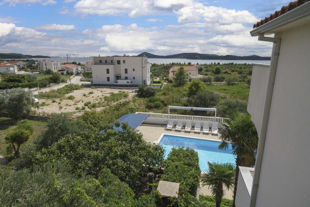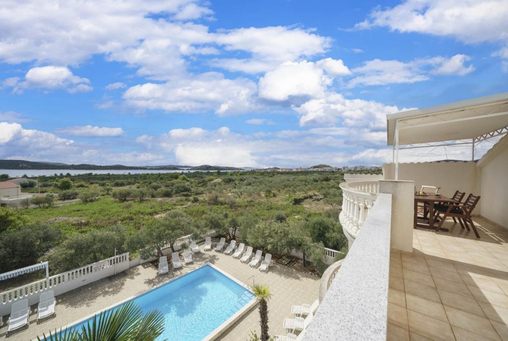 Dům na pozemku 1000 m2, v klidné části Vodice Mírně vyvýšená lokalita s výhledem na moře. Moře a pláž 500m Obchod 500m Centrum Vodice s restauracemi 1km.