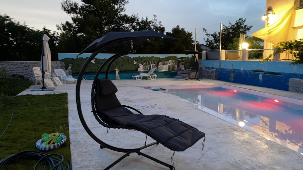 Rozšíření rekreační plochy na 1260 m2 pro různé sportovní aktivity. Spolu s novým obsahem získávají Apartmány IVAN V také slovo RELAX. V provozu je nový bazén s vyhřívanou slanou vodou a vířivkou pro všechny hosty. Očkováni proti Covid-19. Zasíláme potvrzení o platbě rezervace. Všichni stálí hosté mají 10% slevu na standardní splátku pro dané období, stejně jako hosté ze Zenice; slevu nelze sčítat s jinými slevami. Každý apartmán má právo využívat bazén a vířivku ve dvoře objektu. Kapacita objektu je 18 lůžek. Možnost zajištění dopravy na letiště Split nebo Zadar (50 km) za příplatek.
