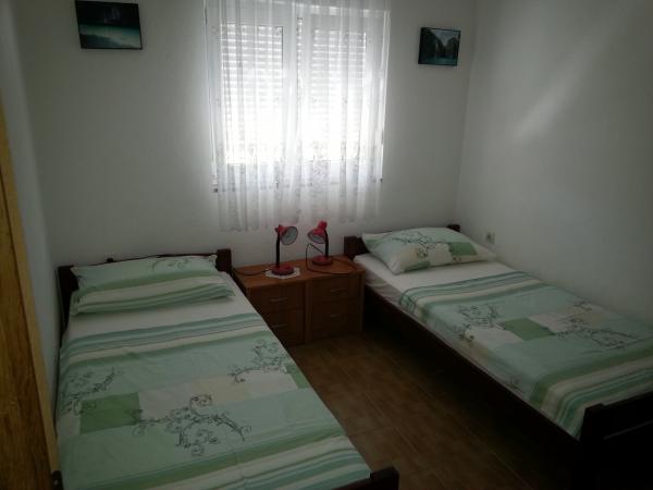 Nově postavená plně zařízené apartmány v klidné části Vodice. Nachází se v blízkosti Imperial Hotel Olimpia. Každý apartmán má dvě ložnice s dvoulůžkových a jednolůžkových lůžky a obývací pokoj s kuchyní, koupelnou a terasou. Možnost použití grilu a víko.
