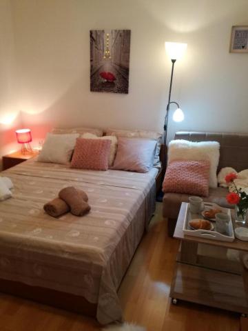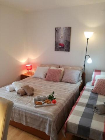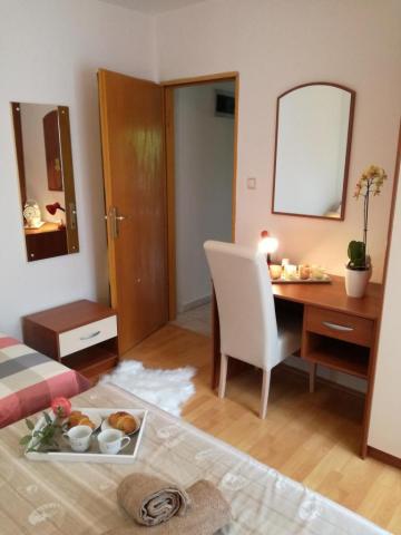 Vážení hosté! V rodinném domě ve zvýšeném přízemí pronajmeme 1 ložnici a 1 studio. Jednopokojový apartmán pro 5 osob. V ložnici je manželská postel a přistýlka (křeslo 80x190). V obývacím pokoji je rozkládací pohovka pro 3 osoby (postel 160x200). Studiový apartmán může ubytovat 3 osoby nebo 4, pokud jsou 2 děti. To má postel pro 2 osoby a tři plakát postel 140x200. Apartmány jsou klimatizované, mají TV, wi-fi, gril a bezplatné parkování před domem. Studio má také pračku. Před jedním a druhým apartmánem se nachází prostorná krytá terasa vhodná pro styk s přáteli. V přízemí domu je dobře zásobený trh se základními potravinami a dalšími potřebami. Modrá pláž s písečnou a oblázkovou pláží a vše, co je nezbytné pro příjemnou dovolenou (restaurace, kavárny, aquapark a další zařízení), je vzdálena 400 m a je tak daleko od prvních kaváren a restaurací v centru města. Pobytová taxa, wi-fi, klimatizace, parkování v ceně.
