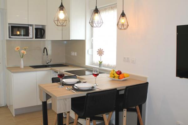 Jsme se nacházejí v blízkosti hotelu Punta. Vzdálenost z našich bytů, centrum města a modrá pláž je vzdálena asi 100 metrů. Každý apartmán má balkon nebo terasu obklopenou zelení. Veškerá infrastruktura je vybaven klimatizací, satelitní TV, Wi-Fi připojením a je k volnému použití pro grilování. Parkování je v přední části domu s nádvoří obklopené s plotem, a je to také zdarma. Strávit svou dovolenou v našich apartmánech. Welcome !!!