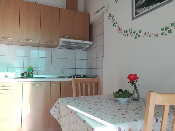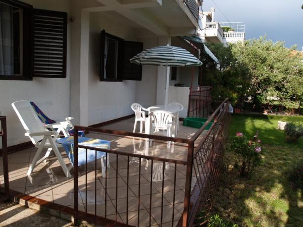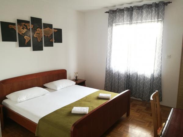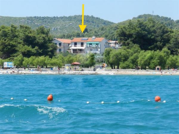 Dům se nachází v klidné čtvrti na prvním řádku k moři a skládá se ze 4 apartmánů. Má krásný výhled na moře a pláž s křovinami a betonovými úseky je ideální pro děti. Pláž má spoustu vybavení, takže si můžete vychutnat jet-ski, šlapadla, vodní park, stolní tenis, trampolínu a mnoho dalších aktivit. Pokud chcete přestávku ze všech aktivit, opalování a koupání, můžete jít na dovolenou v nedalekých kavárnách a restauracích, kde si můžete vychutnat osvěžující nápoje a dalmatské speciality.