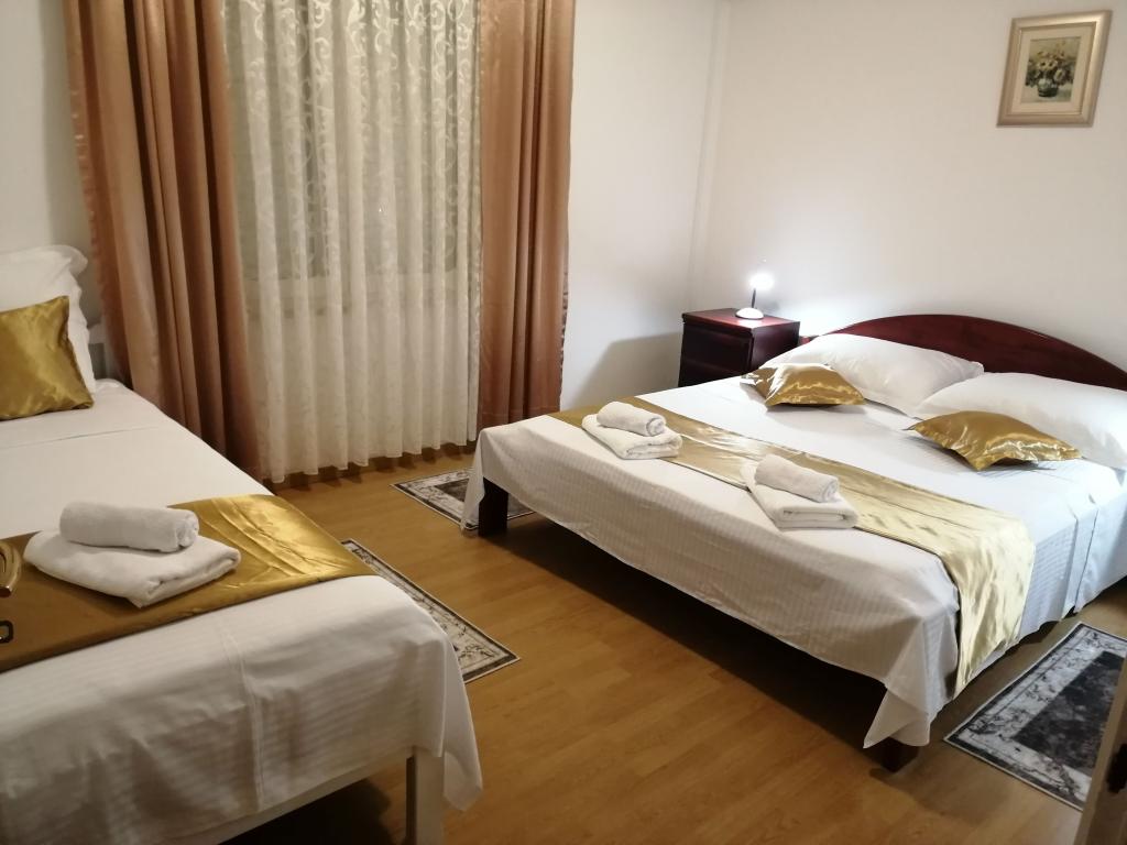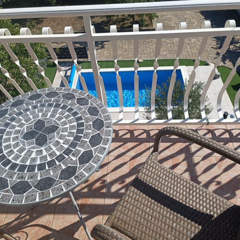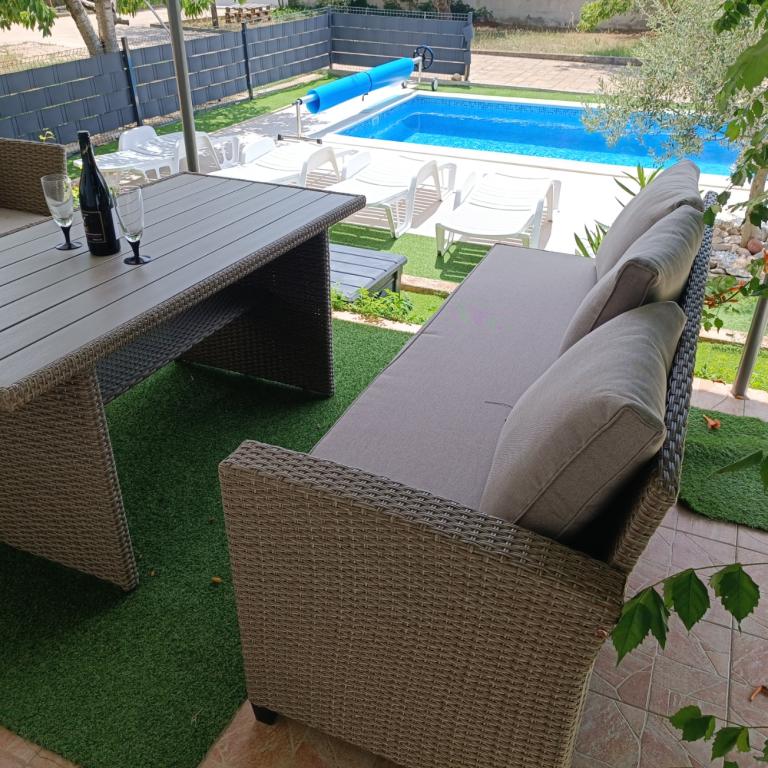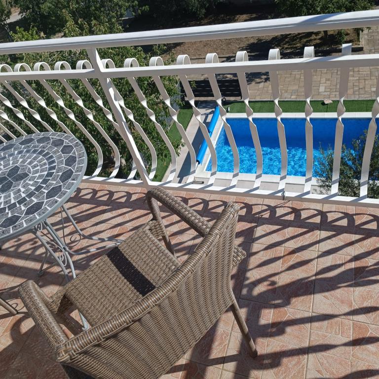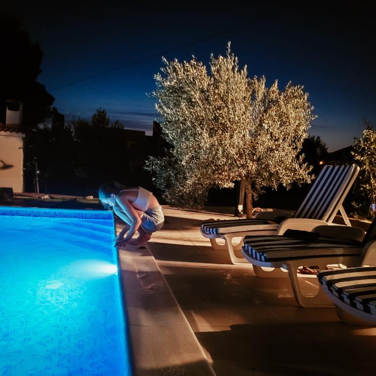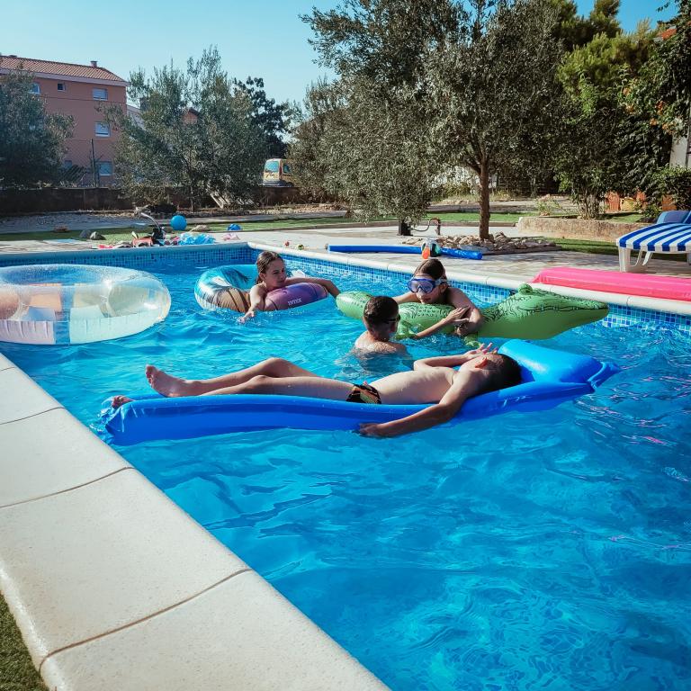 Nově zrekonstruované velké apartmány s venkovním BAZÉNEM JEN PRO VÁS!! JAKO V DOVOLENKOVÉM DOMĚ!! Kompletně NOVĚ ZREKONSTRUOVANÁ kuchyně s novými spotřebiči (lednice, mrazák, trouba, varná deska, mikrovlnná trouba, varná konvice, myčka nádobí, pračka, digestoř). Nádobí a kuchyňské náčiní. Obývací pokoj s rohovou pohovkou, kterou lze v případě potřeby rozložit na prostornou postel. Nová televize se satelitními programy. Ložnice s prostornými manželskými postelemi. Ložní prádlo. Všechny pokoje jsou klimatizované. Dvě koupelny s WC a sprchovými kouty, nově zrekonstruované. Pračka, žehlicí potřeby, fén. Vysavač a čisticí prostředky, toaletní papír, mýdlo, ručníky. K dispozici je také 30 m2 terasa se zahradním nábytkem, stejně jako gril, lehátka u bazénu. Obrovská zahrada o rozloze 1300 m2 s množstvím středomořských stromů. Parkování ve dvoře ZDARMA!!. Letiště Zadar a Split jsou vzdálena asi 60 km. V blízkosti národního parku Krka a Kornati.