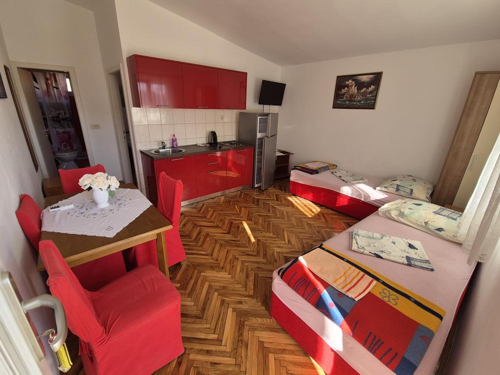 Velmi přátelští a přístupní hostitelé. Domácí víno a fíková pálenka na uvítanou. Byt je velmi čistý a uklizený, s pěknou terasou v přední části, obklopen zelení a chladem. V blízkosti pláže a promenády. Všechna chvála!