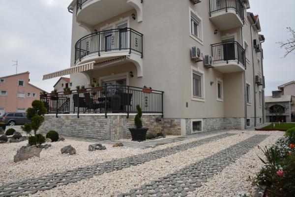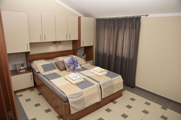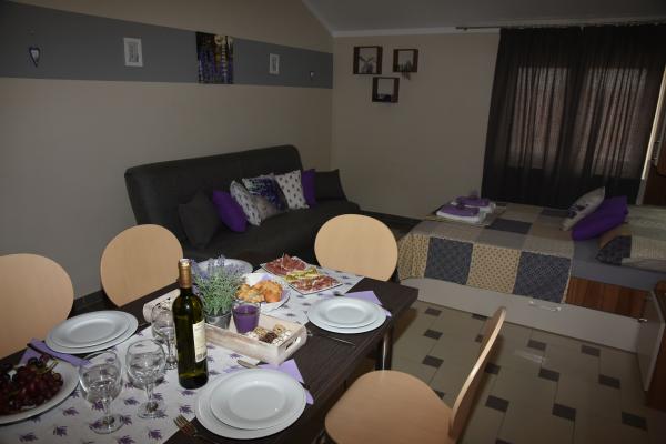 Apartmány Lavendula nabízejí kvalitní ubytování v blízkosti pláže. Apartmány se nacházejí v nově postavené bytové jednotce s krásně upravenými zahradami, dětským hřištěm a zábavním areálem a soukromým parkovištěm. Dům je 450 m od pláže a do 600 m od domu jsou restaurace, trh, bankomat, zábavní park .... Ubytování je vhodné pro rodinný pobyt ve Vodicích. Ubytování je nabízeno v 9 nově postavených apartmánech. Každá ubytovací jednotka má plně vybavenou kuchyň, manželskou postel, přistýlku, koupelnu (WC), klimatizaci, internet, satelitní TV, okenní komanche a balkóny se stolem a židlemi. Hosté apartmánů mají přístup na: hernu a zábavní místnost se šipkami, kulečník a stolní fotbal, organizovanou zahradu se zahradním nábytkem a grilem, parkovací místo. Doplňkové služby (příplatek) -Společnost pronájmu jízdních kol -Transfer z / na letiště -Výkonná služba Přejeme Vám srdečné přivítání a příjemný pobyt Apartmány LAVENDULA Vodice