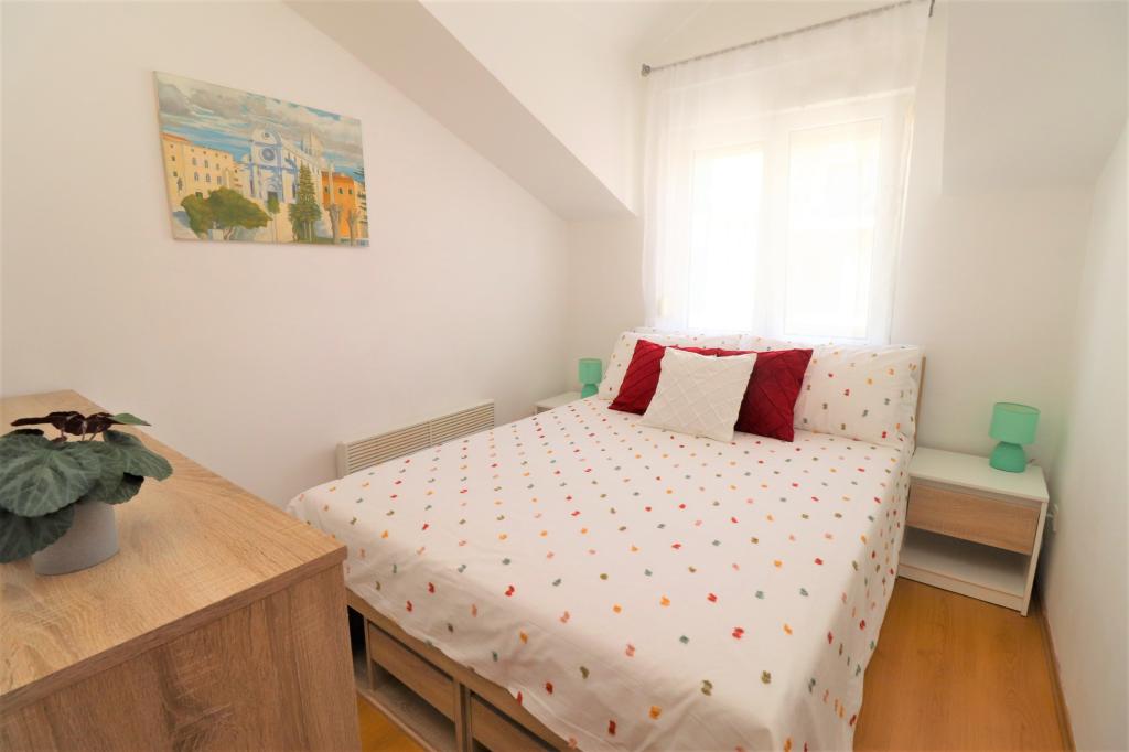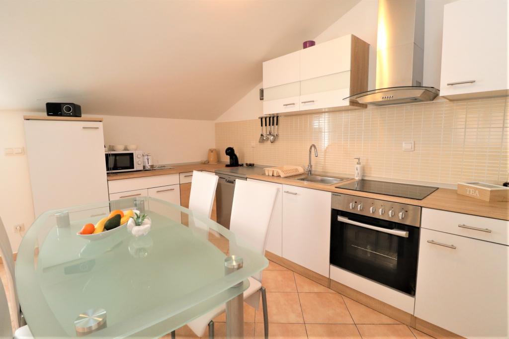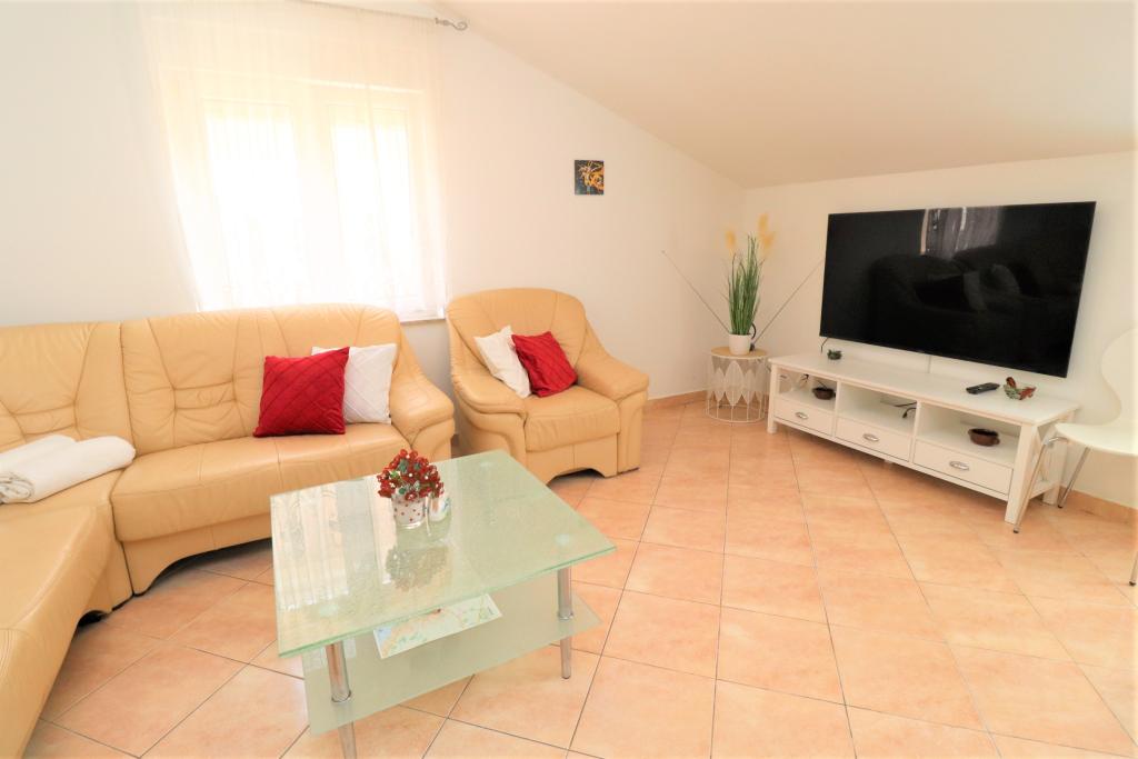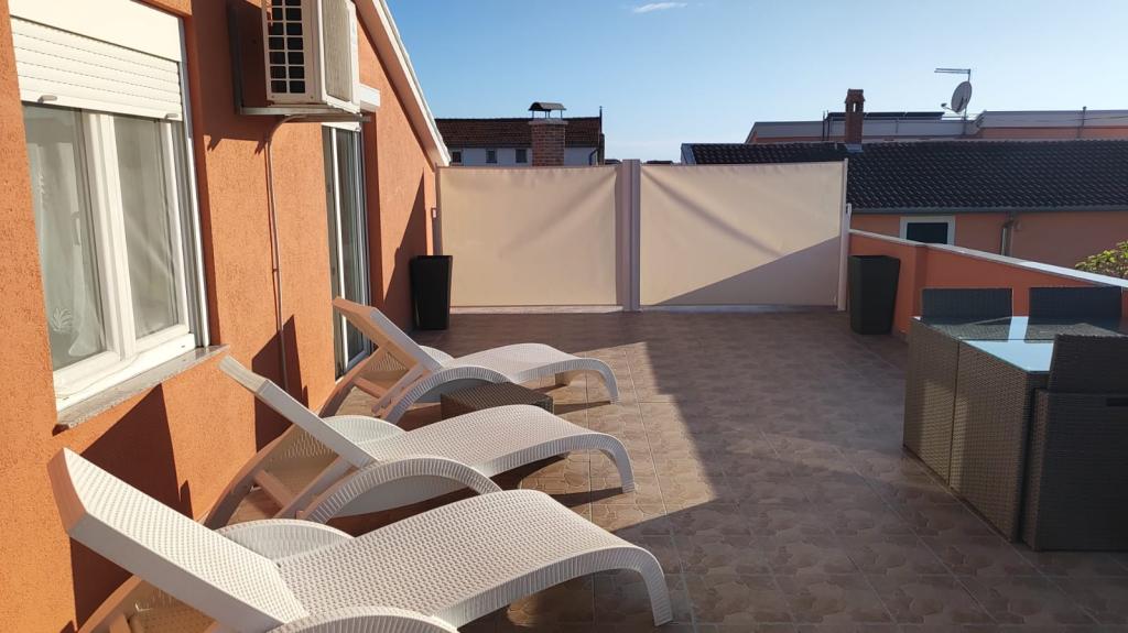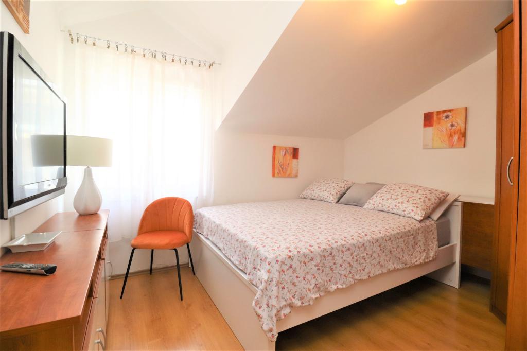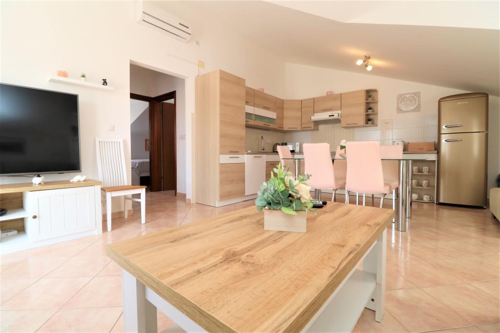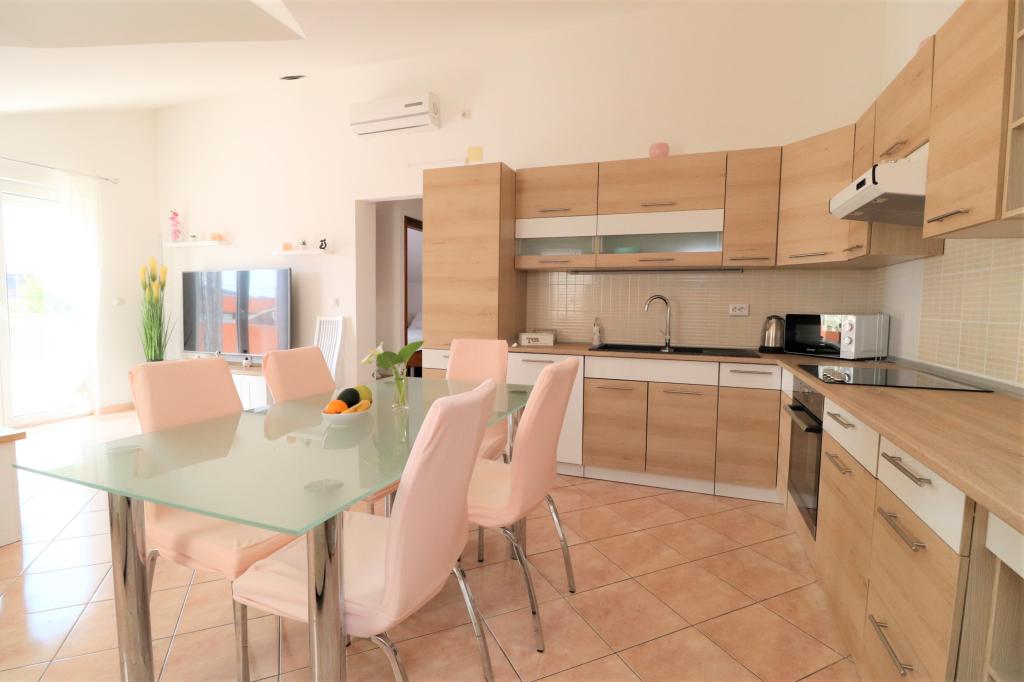 Plně vybavené apartmány v klidné části Vodice s velkou terasou a dvorem. Apartmány se nacházejí v posledním patře rodinného domu. Terasu lze v případě potřeby oddělit boční markýzou. Na dvoře je jacuzzi a gril. Domácí mazlíčci jsou vítáni. K dispozici je parkovací místo pro dvě auta. Pláže jsou vzdálené asi 15 minut chůze. V ceně je zahrnuta pobytová taxa. Možnost dopravy z letišť Zadar a Split.