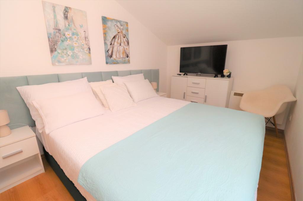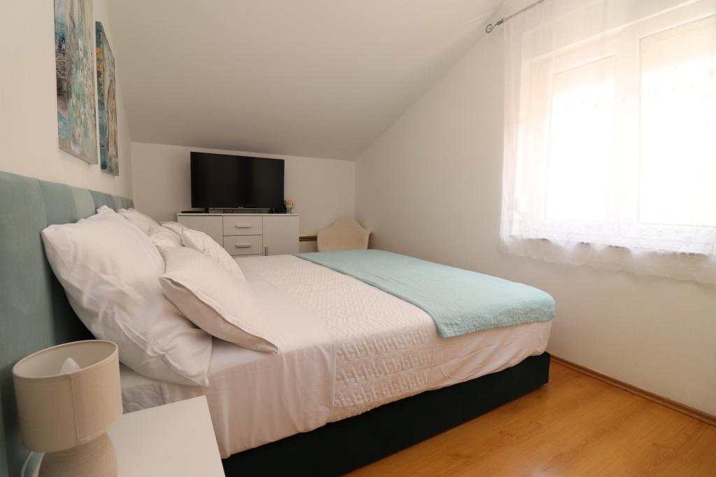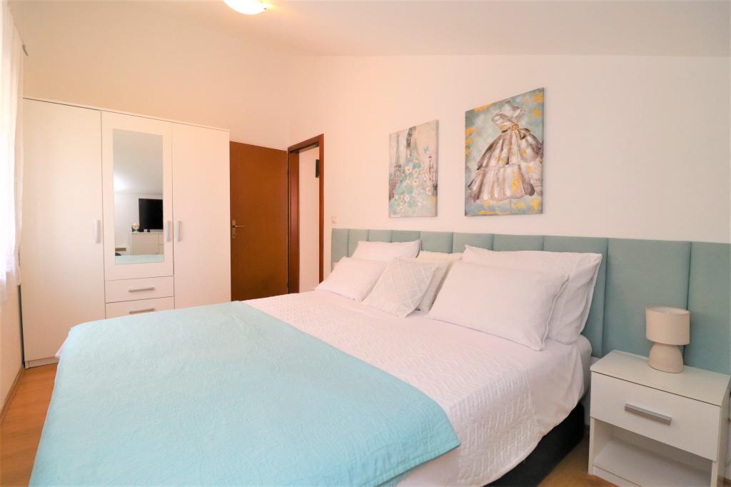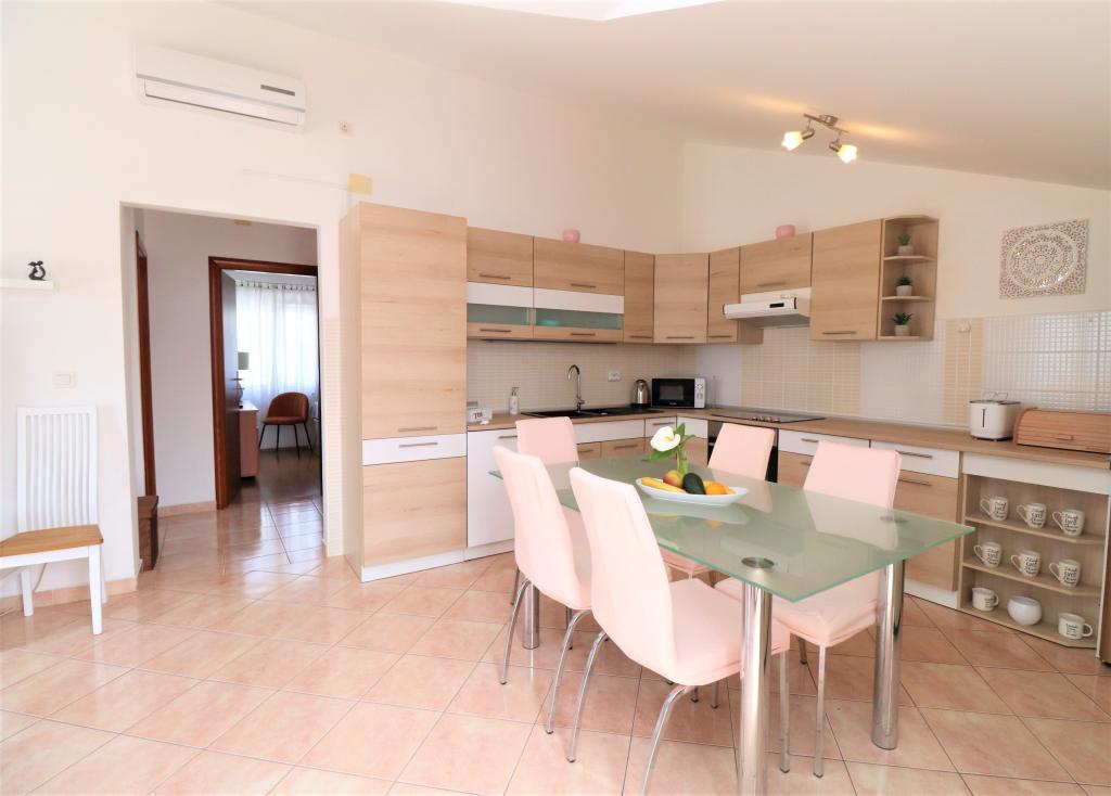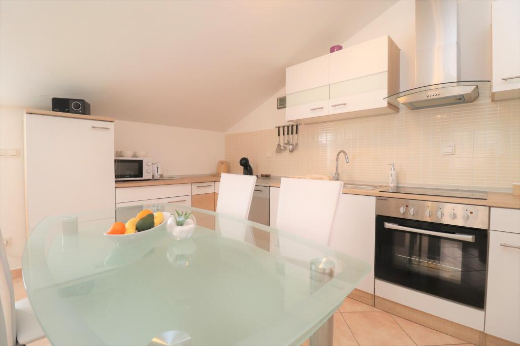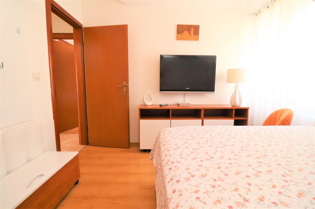 Plně vybavené apartmány v klidné části Vodice s velkou terasou a dvorem. Apartmány se nacházejí v posledním patře rodinného domu. Terasu lze v případě potřeby oddělit boční markýzou. Na dvoře je jacuzzi a gril. Domácí mazlíčci jsou vítáni. K dispozici je parkovací místo pro dvě auta. Pláže jsou vzdálené asi 15 minut chůze. V ceně je zahrnuta pobytová taxa. Možnost dopravy z letišť Zadar a Split.
