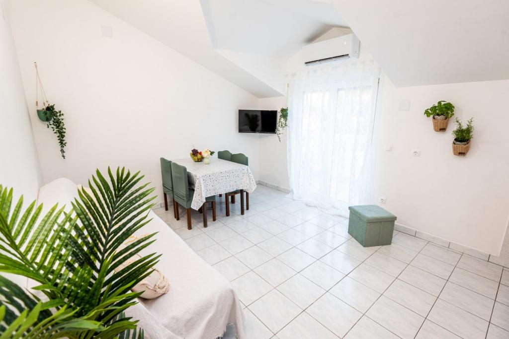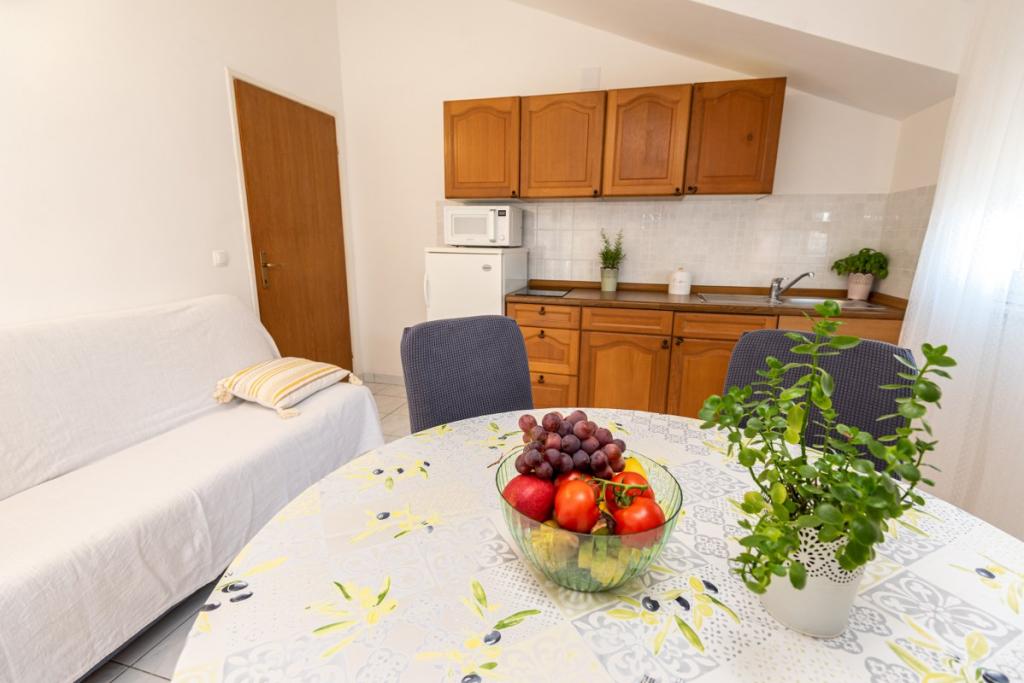 Přivítáme vás při příjezdu welcome drinkem, našimi domácími produkty jako olivový olej, sušené fíky, mandle, lívanečky... V apartmánech jsou také doplňkové brožury a katalogy města Vodice o zařízeních, která nabízejí .