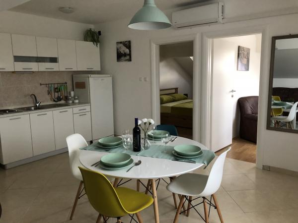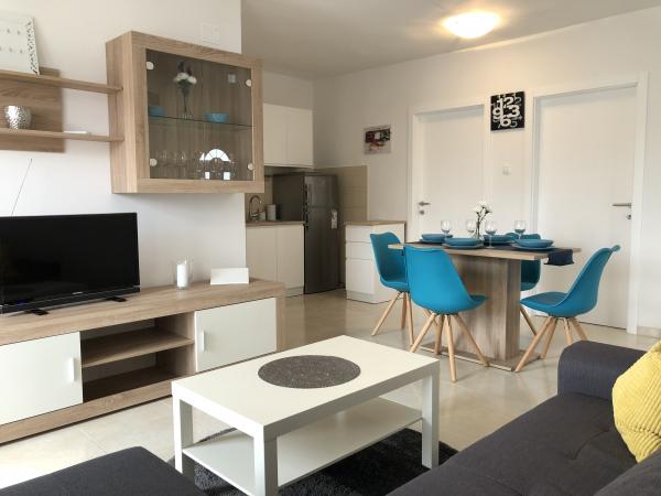 Komfortní třípokojové apartmány v klidné části Vodice. Apartmány obsahují vše, co potřebujete pro příjemný pobyt. Vhodné pro rodiny s dětmi nebo lidi hledající dovolenou. Apartmány se nacházejí pár minut jízdy autem od centra Vodice, pláže a mnoha zařízení. Každý apartmán má dvě ložnice, obývací pokoj s jídelnou a kuchyní a koupelnu.