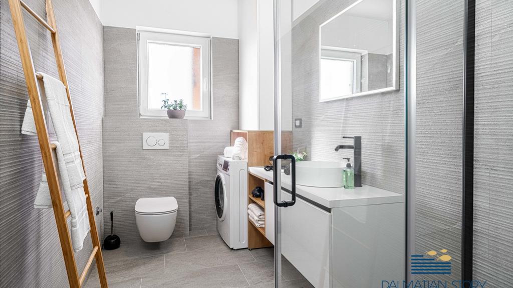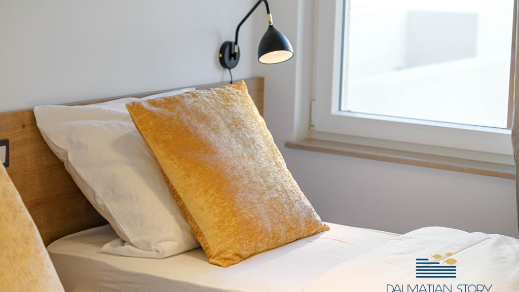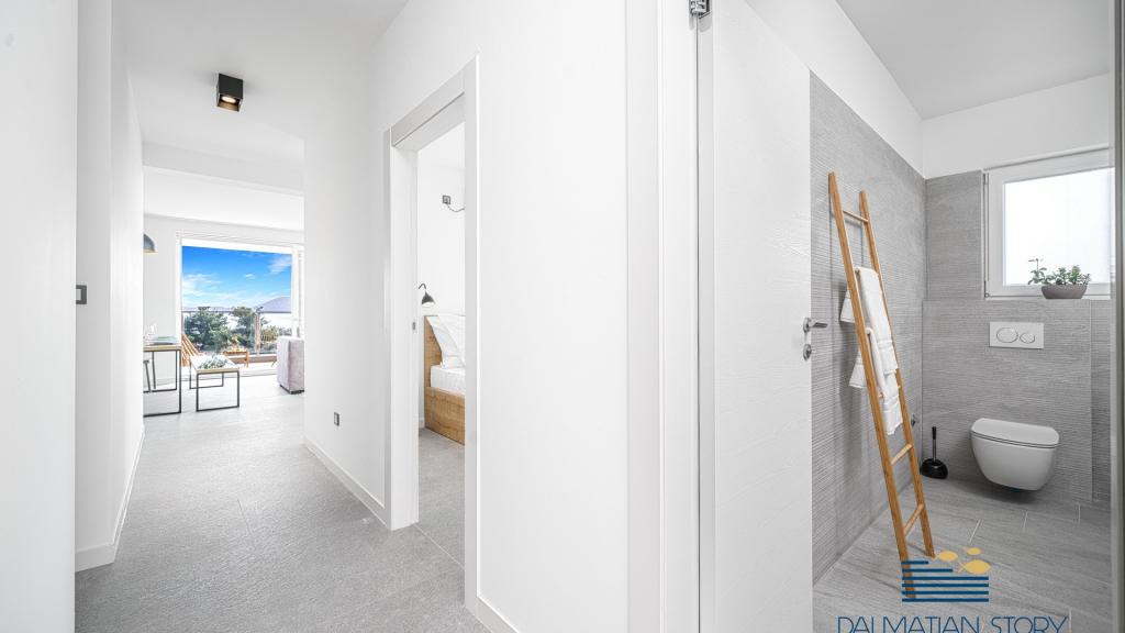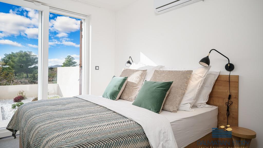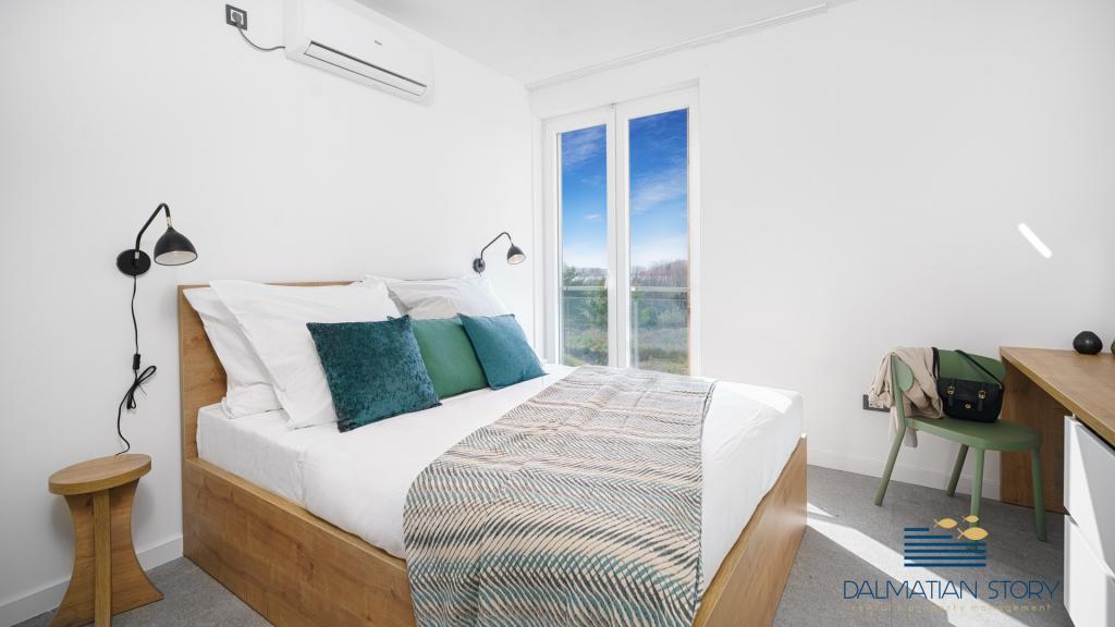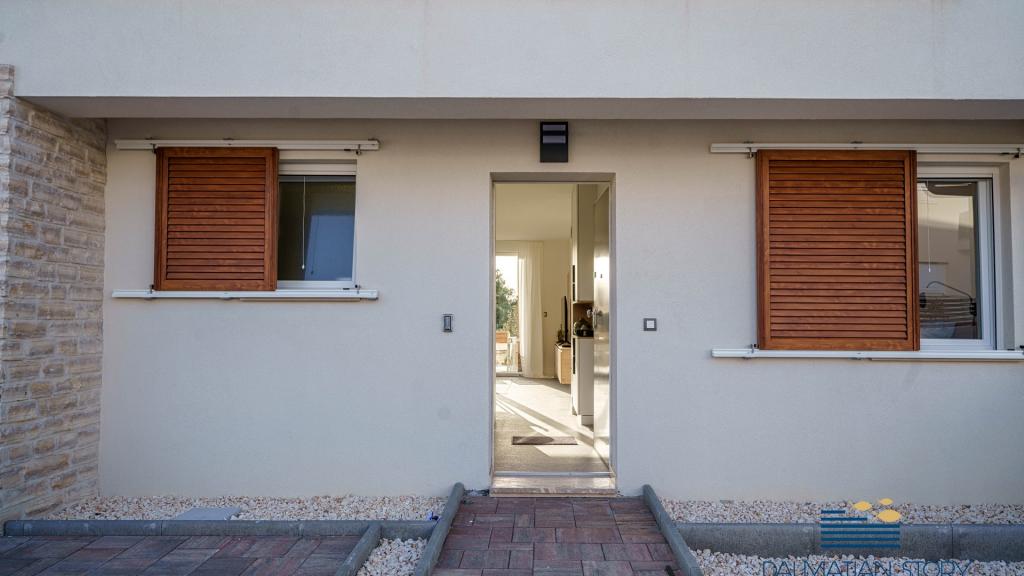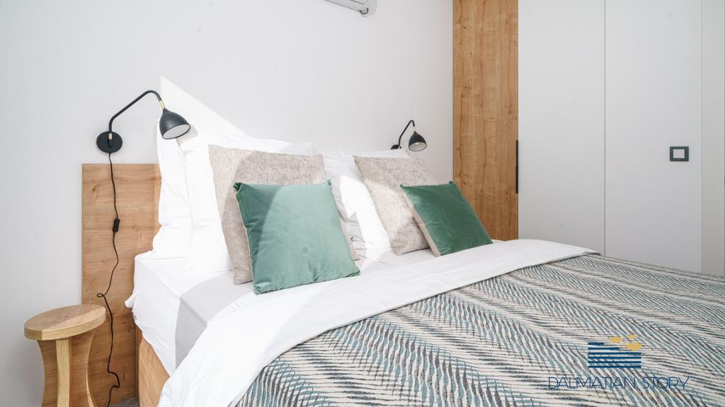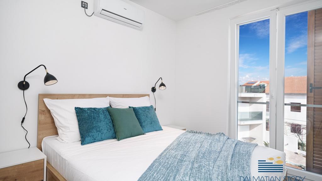 Nově zrekonstruované a vybavené apartmány Maris jen 150m od pláže v klidné části Vodice. V přízemí se nachází Apartmán Maris 1 se 2 ložnicemi o celkové ploše 65 m2, byt se skládá z kuchyně, jídelny a obývacího pokoje jako jeden celek se vstupem na malou oplocenou zahradu a terasu s posezením, 1 ložnice s manželskou postelí a 1 ložnice pokoj se dvěma samostatnými lůžky a koupelnou, samostatný vchod a parkovací místo ve dvoře. Ideální pobyt pro 4 osoby. Ve 2. patře se nachází apartmán Maris 2 se 3 ložnicemi a 2 koupelnami 110m2, apartmán se skládá z plně vybavené a vybavené kuchyně, jídelny a obývacího pokoje jako jeden celek se vstupem na krytou terasu s krásným výhledem na moře a přilehlé ostrovy.prostor pro posezení a užívání si slunce, 2 koupelny a 3 ložnice, z nichž dvě jsou vybaveny manželskou postelí a jeden pokoj se dvěma samostatnými lůžky. Byt je klimatizovaný, má internetové připojení, parkování.